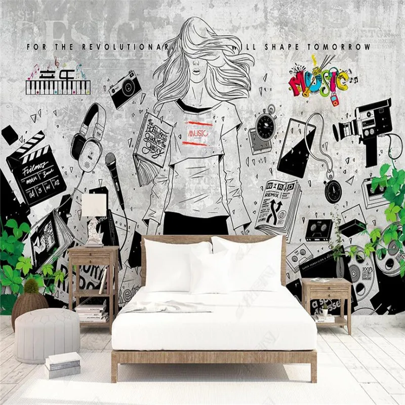 Ретро ностальгическая музыкальная тема граффити настенная живопись на заказ бар КТВ Ресторан настенная бумага рок студия Декор настенная бумага 3D