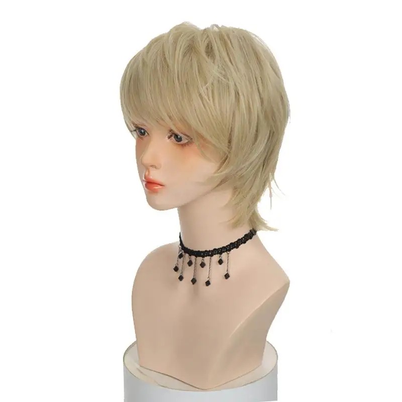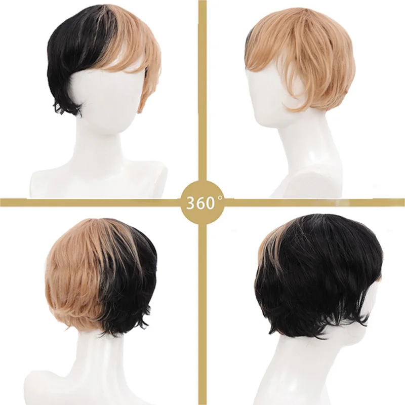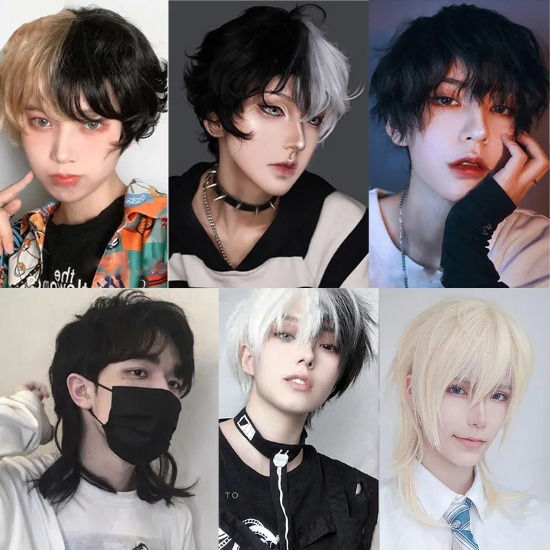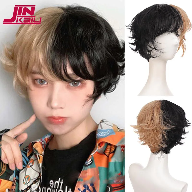 Парик JINKAILI мужской для косплея, синтетический с короткими вьющимися волосами из аниме с челкой, цвет розовыйфиолетовый, для костюма, искусственные волосы на Хэллоуин