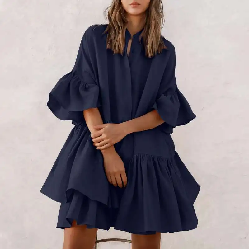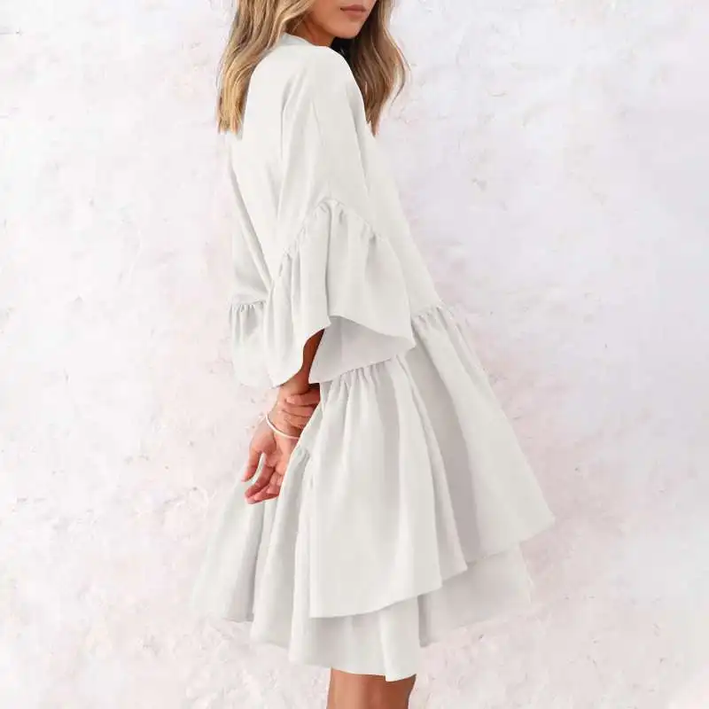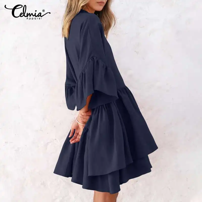 Сарафан Celmia женский однотонный, пикантное мини-платье с рукавами до локтя и оборками, Повседневная Свободная вечервечерние одежда, лето 2021