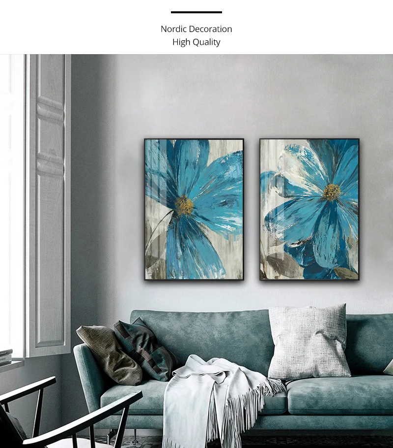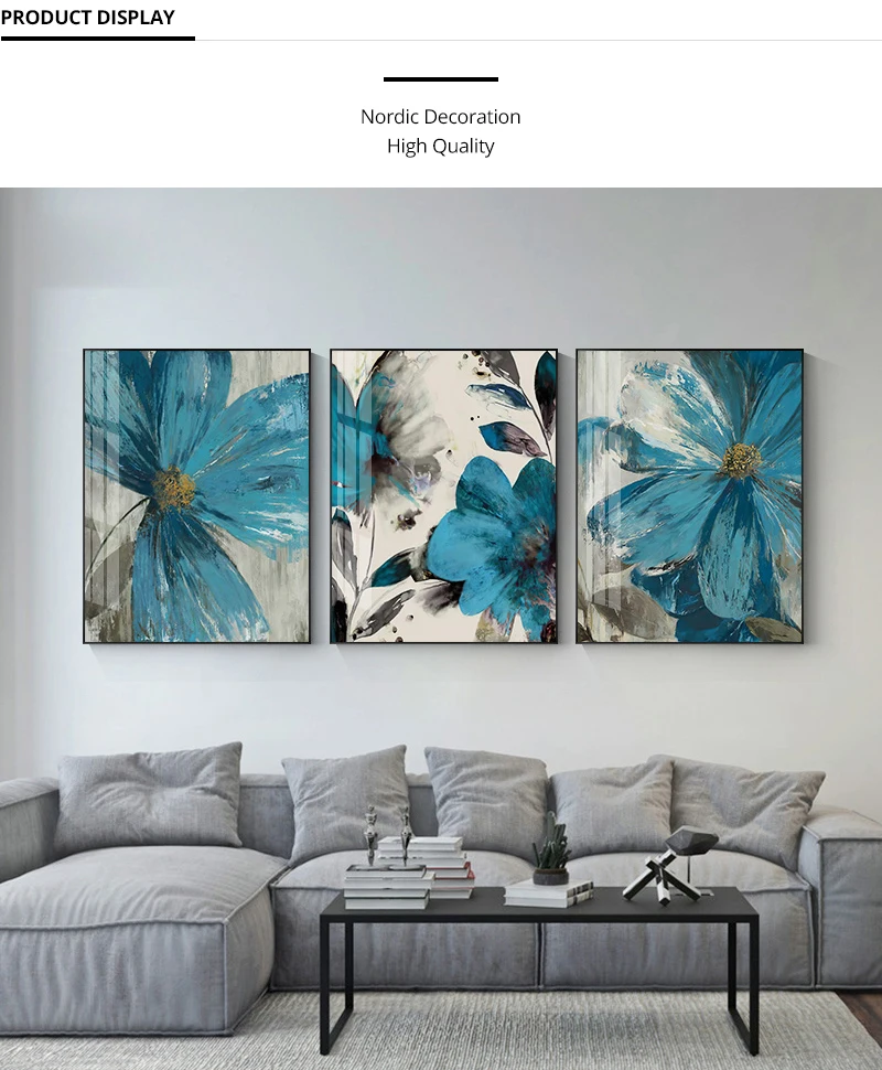 Винтажный постер с изображением синих цветов на холсте, абстрактный постер, цветущая жизнь, ботанический принт, Настенная картина, украшение для гостиной