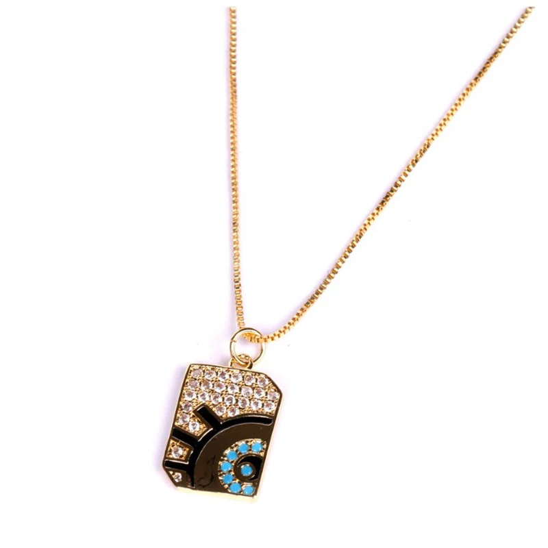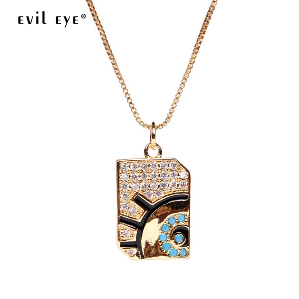 Ожерелье с кулоном из циркония и меди золотистого цвета с микрозакрепкой сглаза, колье с длинной цепочкой, модные ювелирные украшения для женщин и девушек, LE624