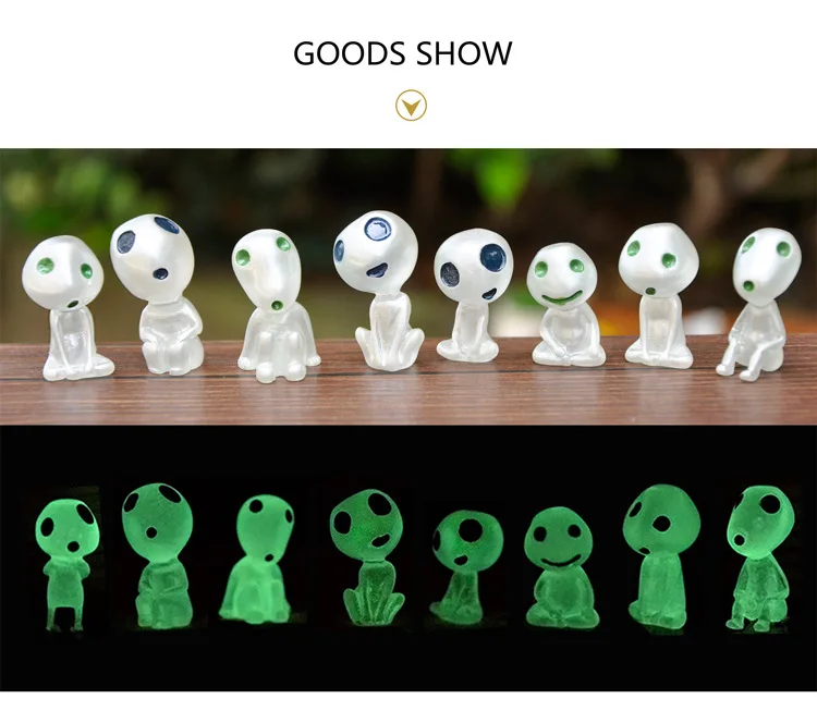 10 шт., фигурка принцессы Мононоке, деревянная Кодама, гибли, спиртовой эльф, смола, светящиеся в темноте светящиеся куклы, Мультяшные модели, игрушки