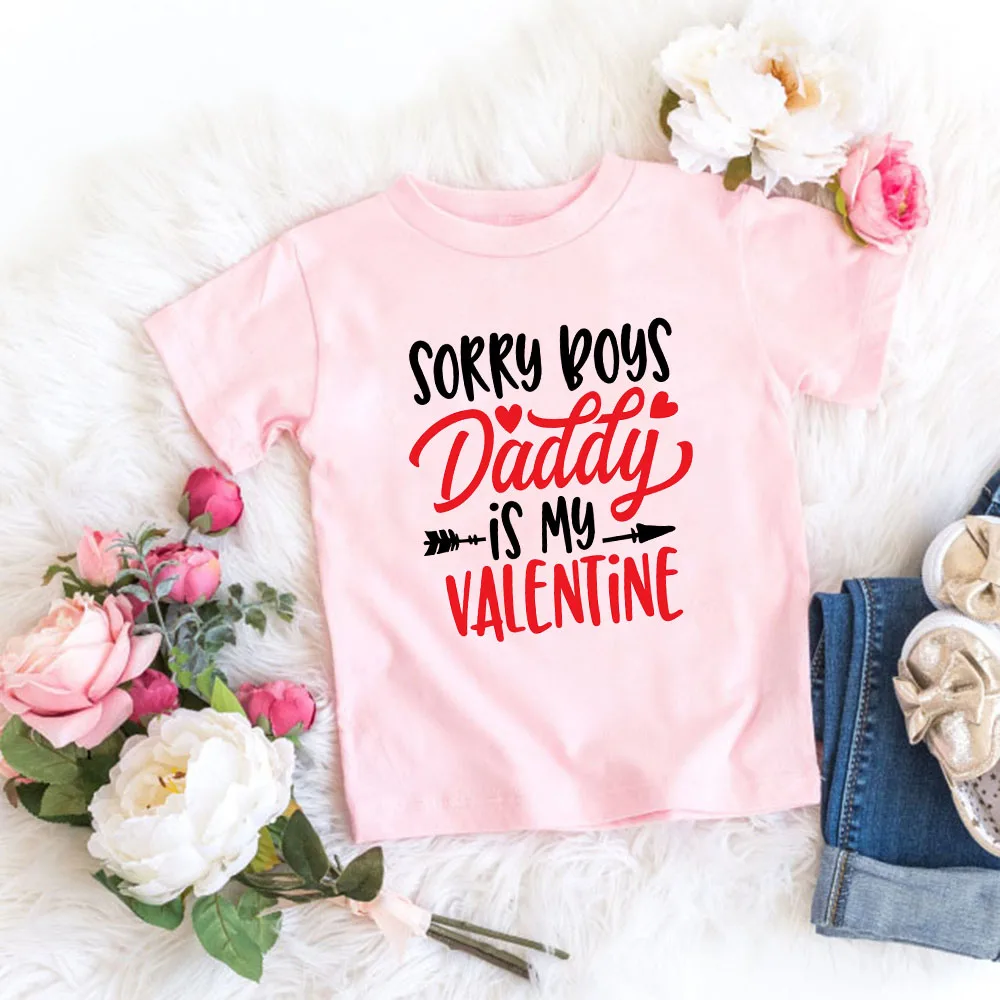 Детские футболки с надписью «Daddy Is My Valentine» для мальчиков и девочек на День святого Валентина футболки для праздников подарок на день Святого Валентина