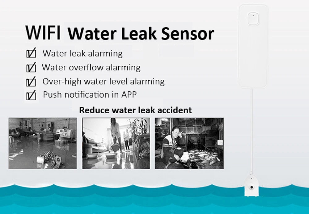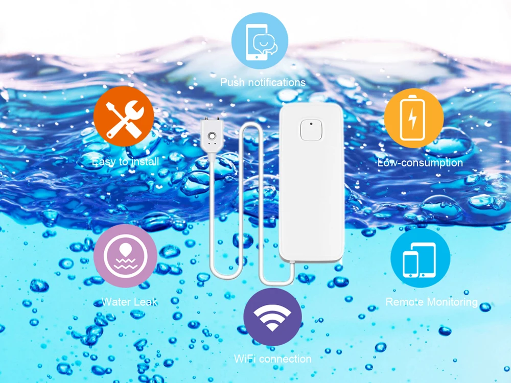 Как только датчик утечки воды thr коснется воды, датчик утечки воды отправляет уведомление в приложение.