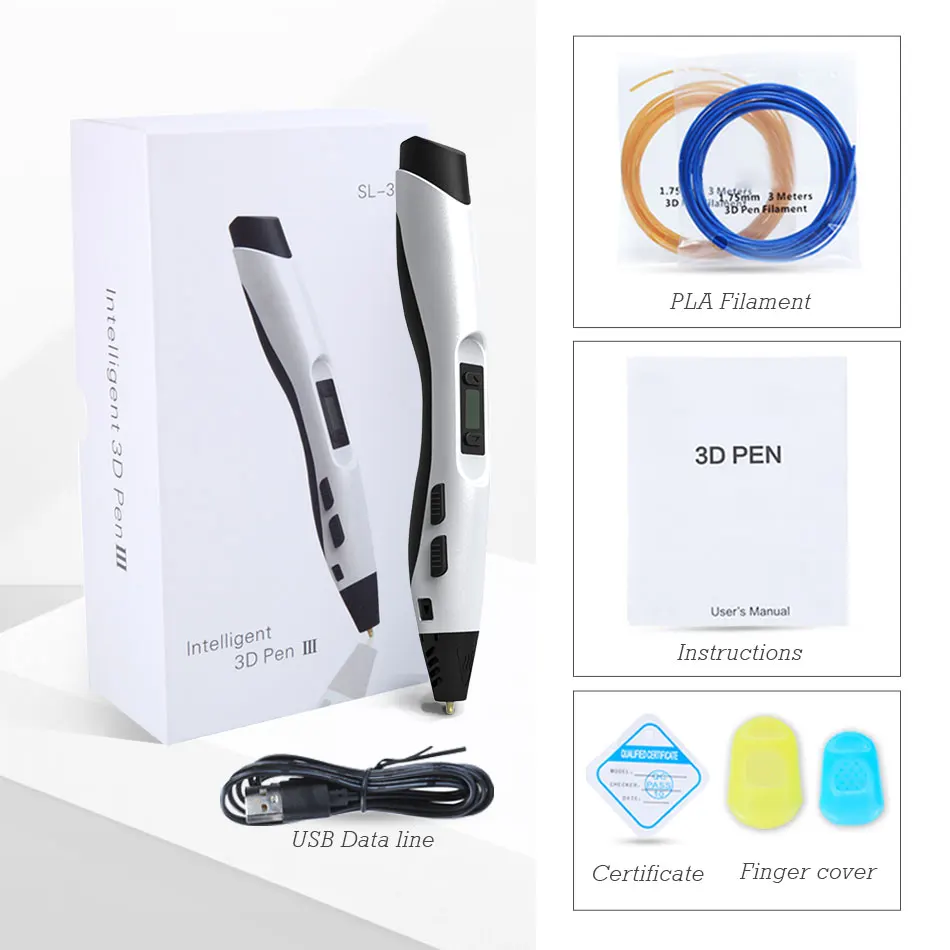 Название: SL-300A 3D РучкаКоличество: 1 ручка, 1 USB кабель, 1 руководство, 2 нити, 2 пальцаПрименимый материал: 1,75 мм PLA/ABS/PCLОптимальная температура: PLA 160-180 ℃, ABS 180-210 ℃ , PCL 50-60 ℃Цвет: белый, серый, синий, зеленыйВходная мощность: DC5 +/-0,25 V 2A 10WМощность вход адаптера переменного тока: AC100-240V 50/60HZ 0.35AГарантия: один год