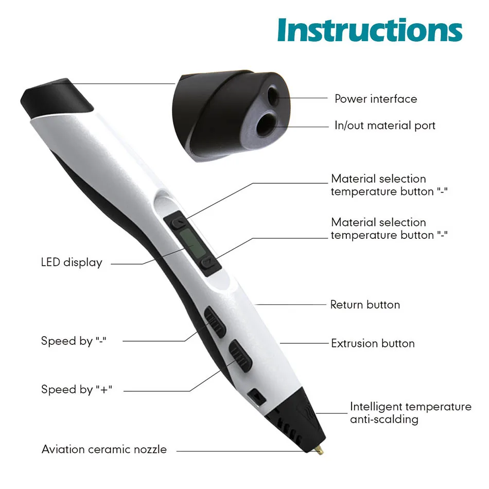 3D Printing Pen Temperature UsePLA 160~180℃ , ABS 180~210℃ , PCL 50~60℃