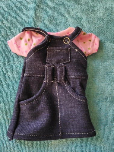 футболка без застежки. надевать на куклу проблематично. Сарафан сшит очень не аккуратно.