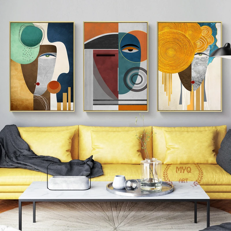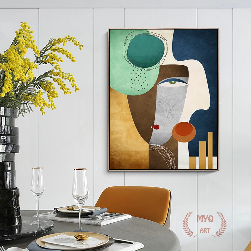 Современная Абстрактная фигурка, Геометрическая Картина на холсте, Современный художественный плакат, печать лиц, Настенная картина для гостиной, домашний декор