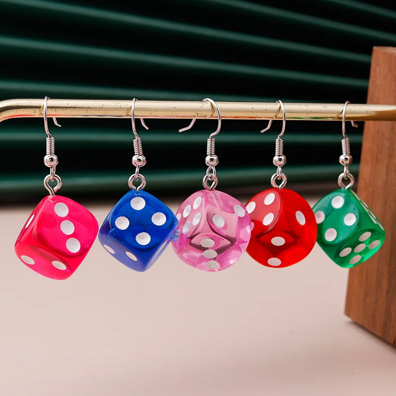 Серьги-подвески женские, из акрила, трехмерные, прозрачные, разноцветные, серьги в виде игральных костей