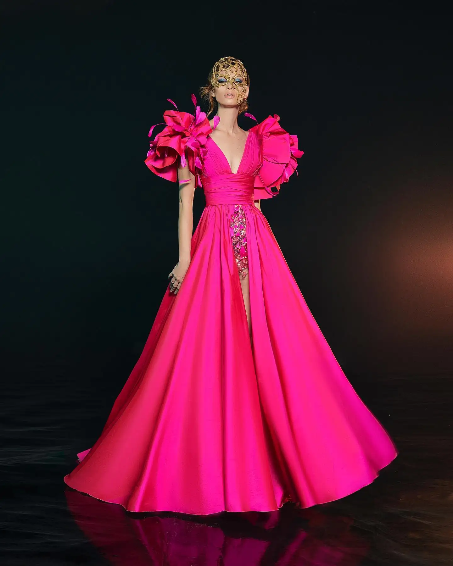 Женское платье с открытой спиной, длинное розовое платье с разрезом и V-образным вырезом