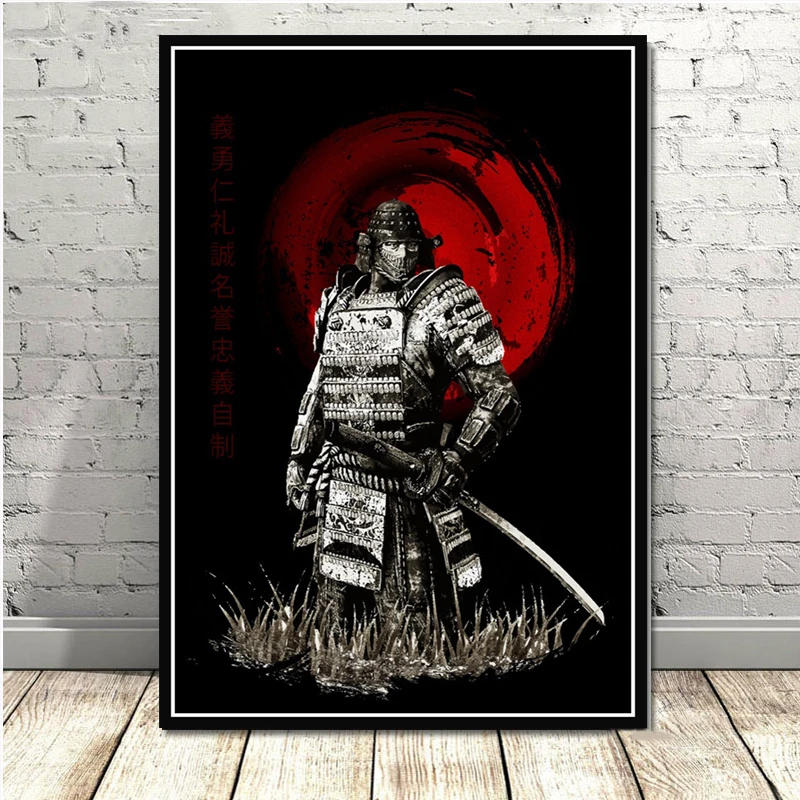 Картина на холсте с японским Самураем Бушидо, винтажный декоративный постер, домашний декор