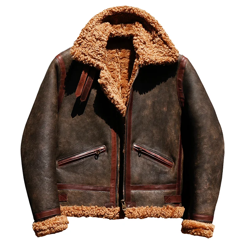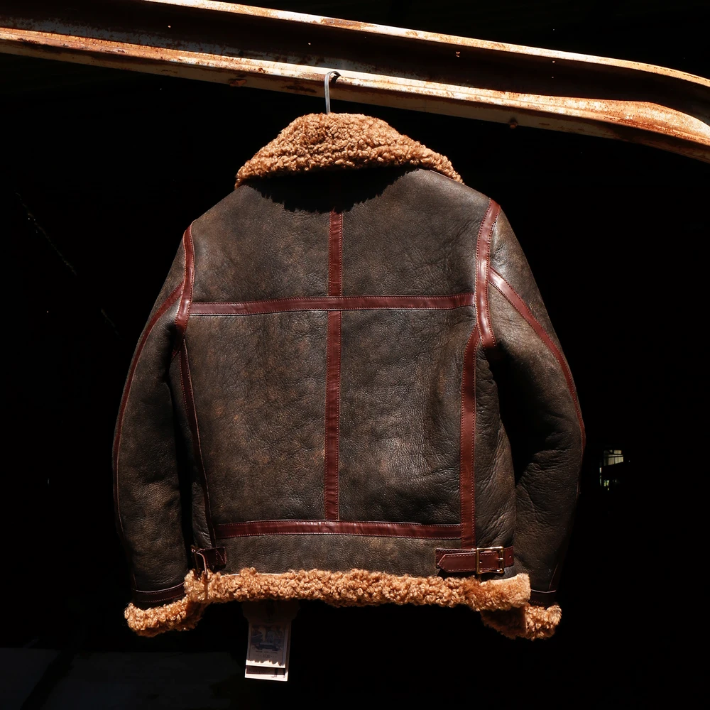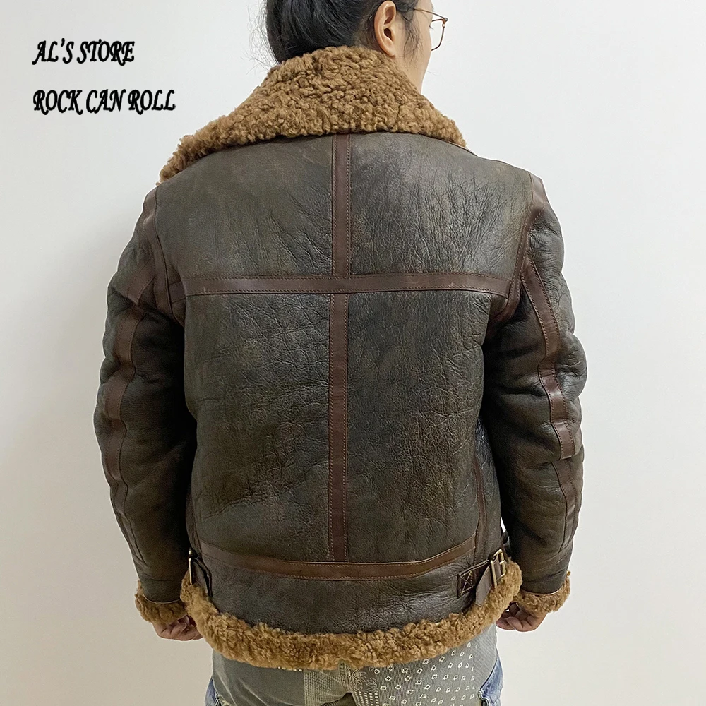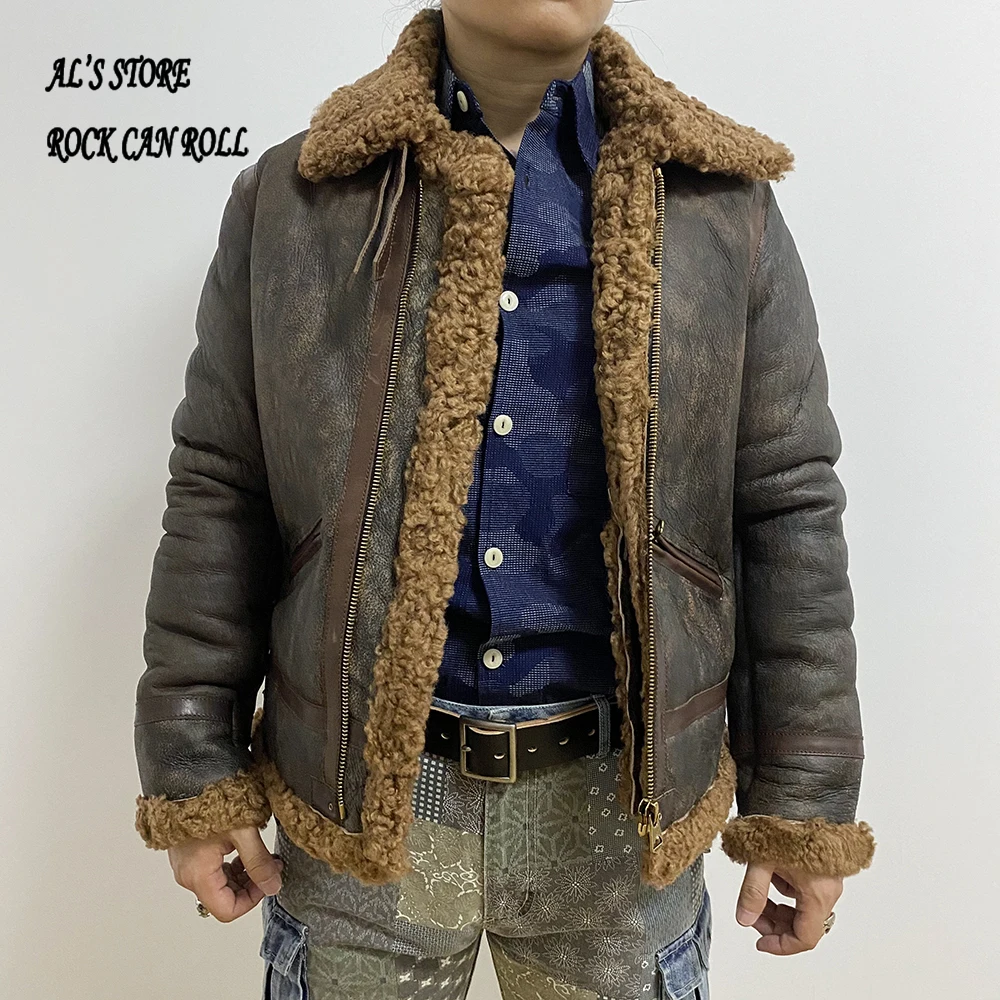 Куртка-бомбер мужская из натуральной овечьей кожи, с мехом мериноса, большой американский размер, CDB3-6