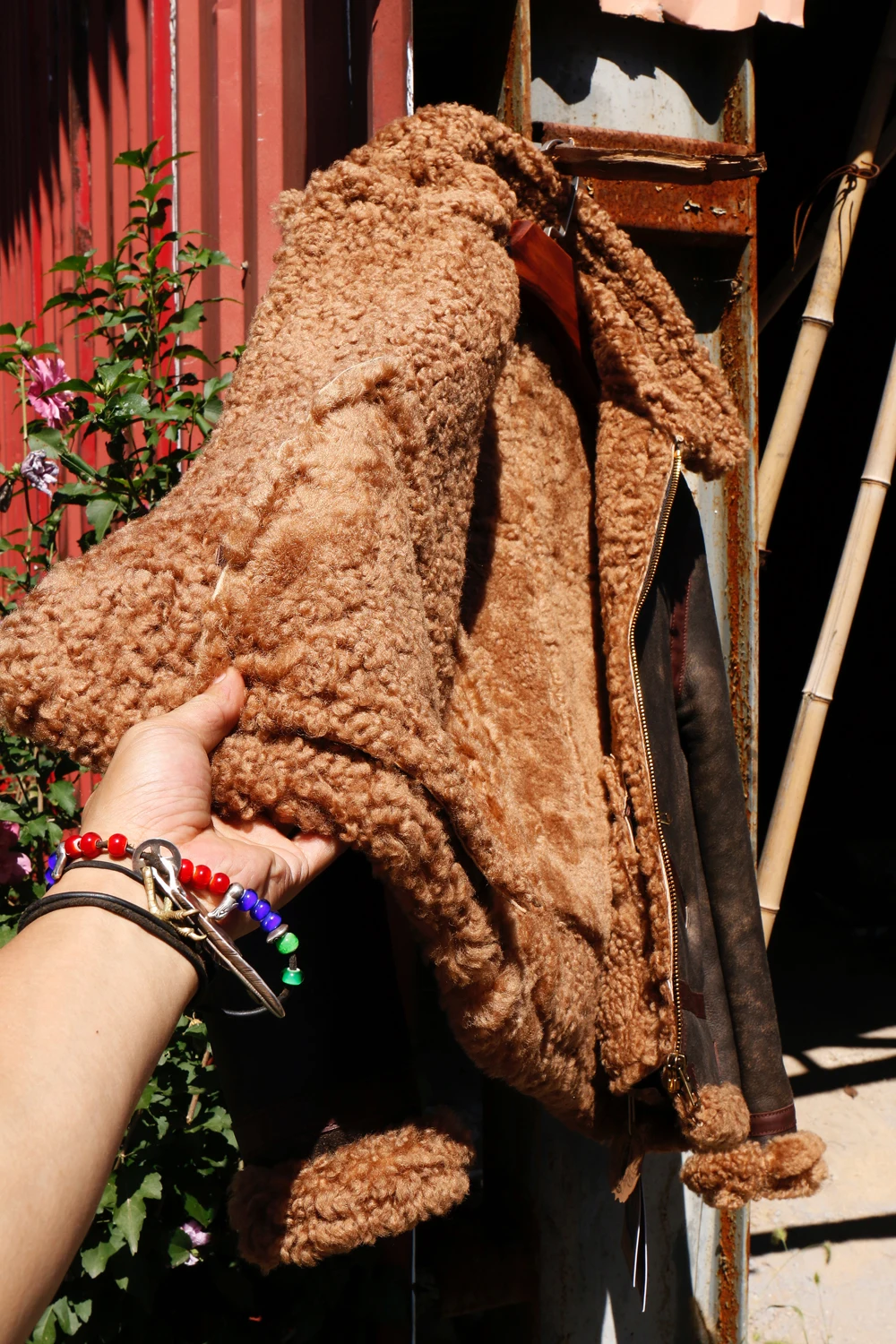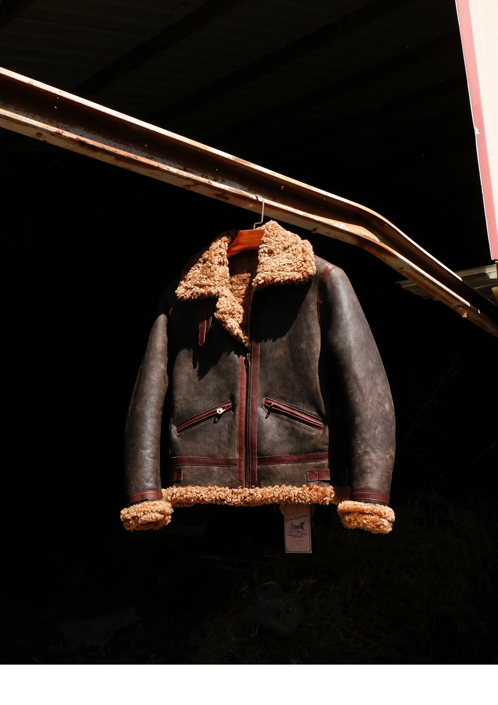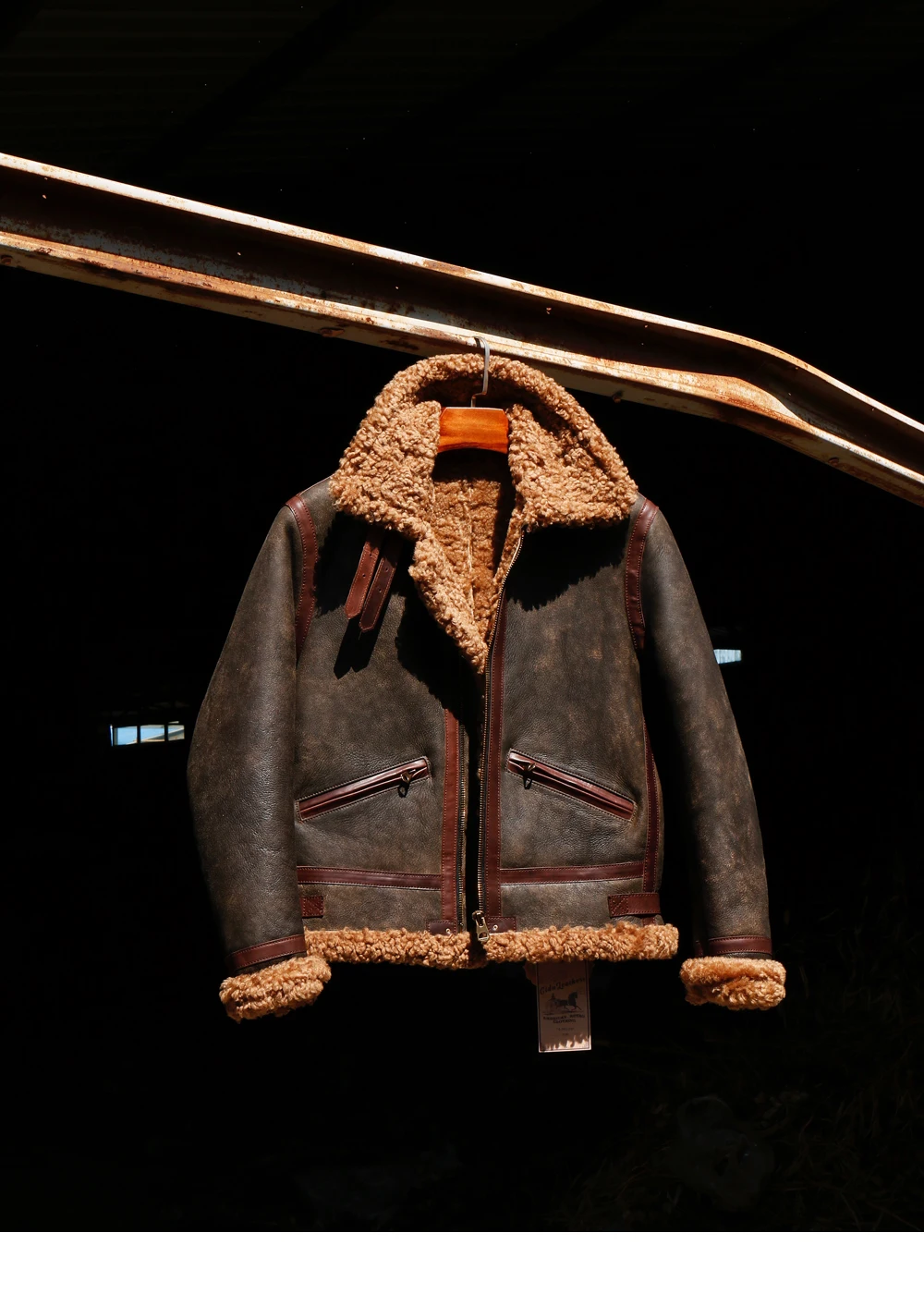 Куртка-бомбер мужская из натуральной овечьей кожи, с мехом мериноса, большой американский размер, CDB3-6