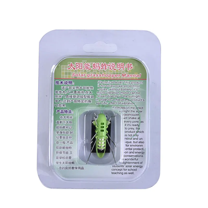 Zonne-energie mini Grasshopper. ABS materiaal, milieuvriendelijke. Lint lichaam, goede touch.Kunnen bewegen rond onder zonlicht zonder batterijen, direct licht kan worden geschokt, energiebesparing.Kan worden verzameld als insect huisdier модель worden gebruikt voor lastig speelgoed voor plezier.Geweldige Speelgoed voor Kinderen en leren hen om onze aarde behulp van Green Power.Wanneer blootgesteld aan zonlicht, de springhaan zal start zijn mini motor en schudden zelf.Специфика: