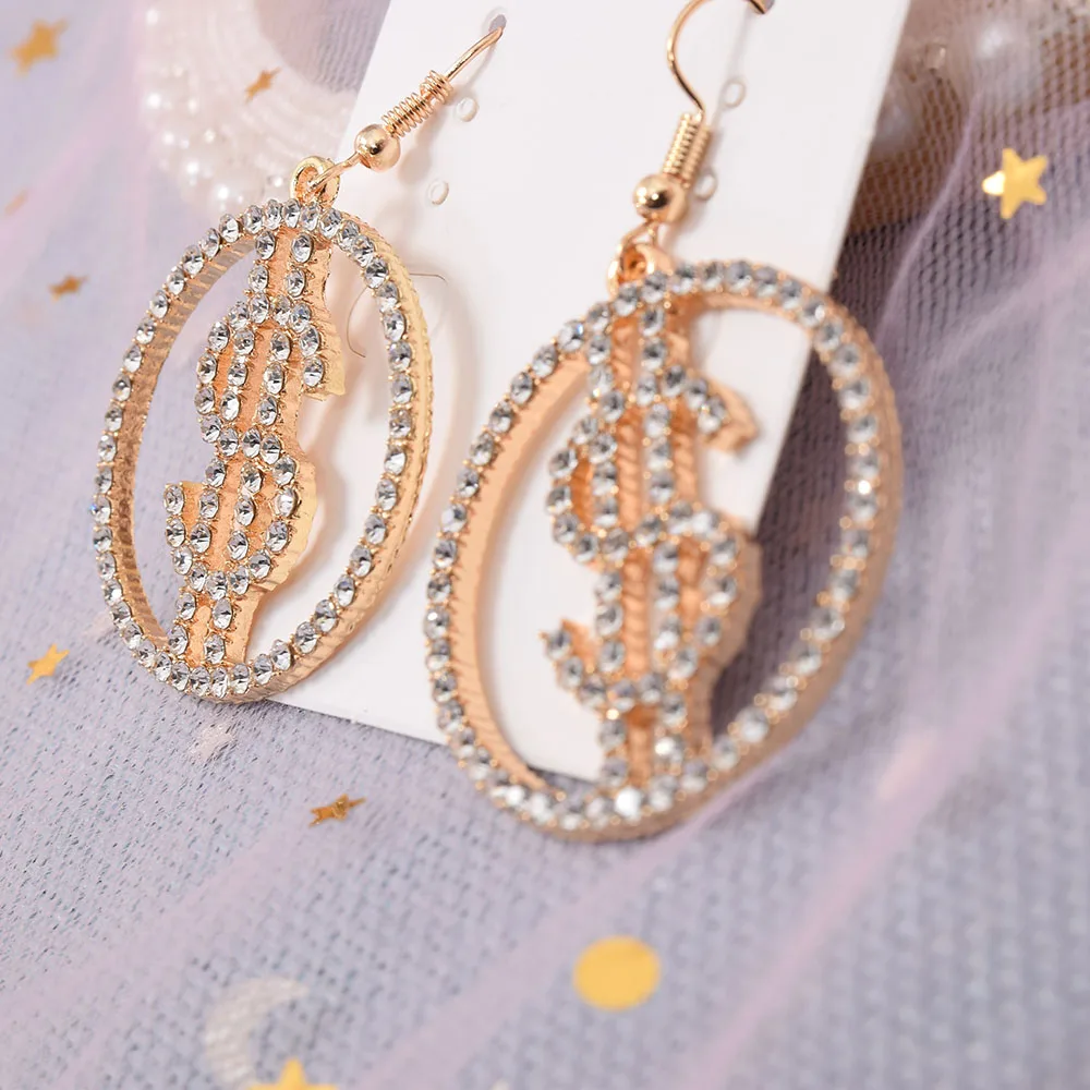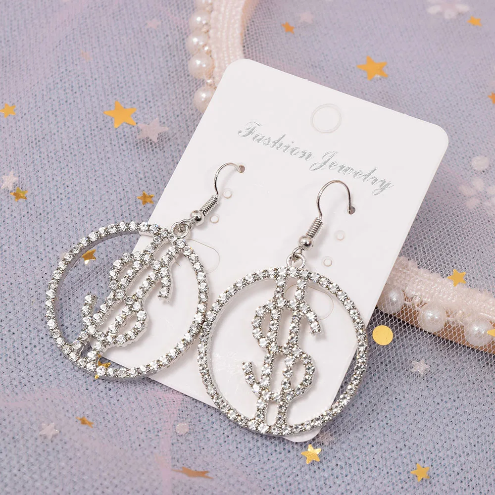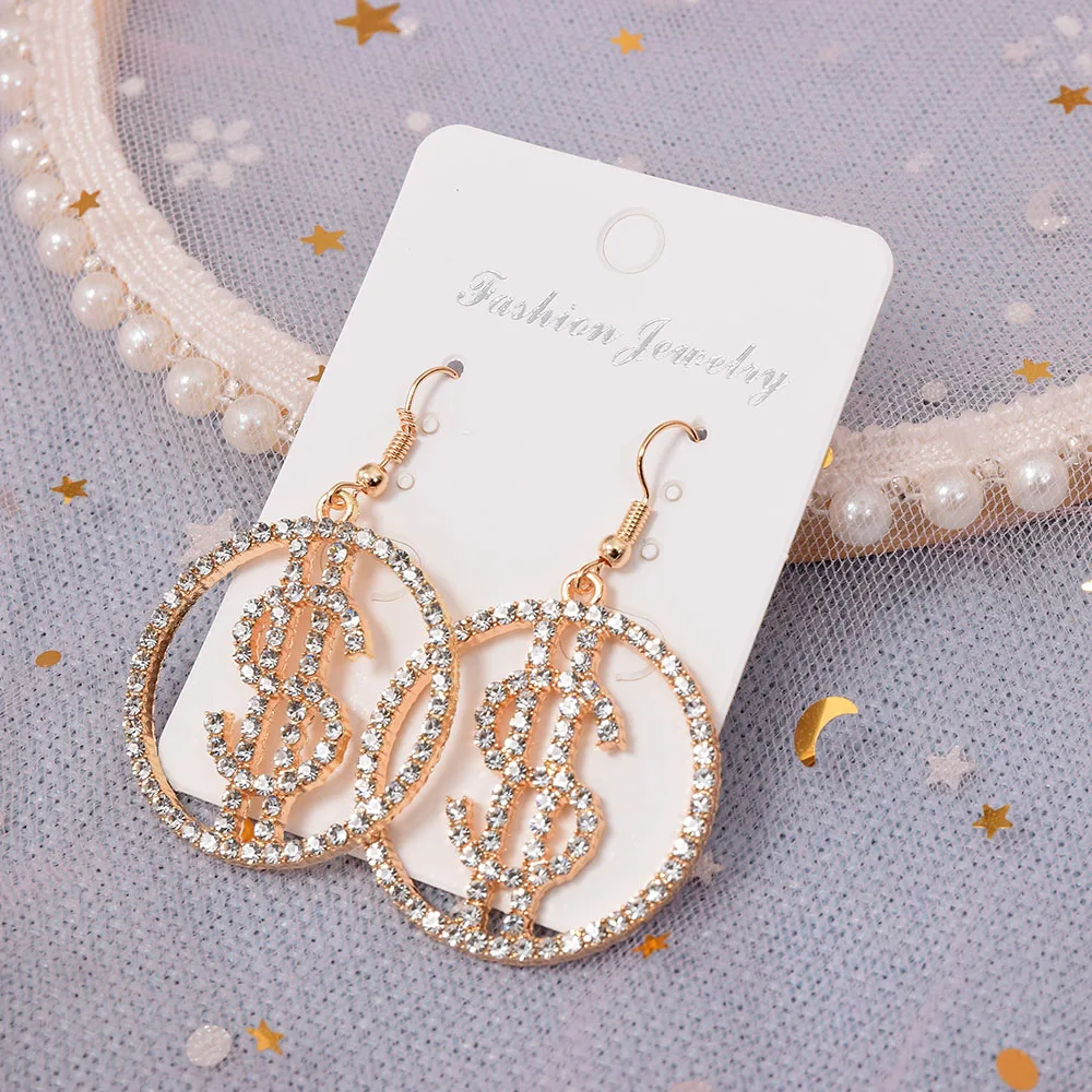 Индивидуальные блестящие женские серьги Стразы в форме доллара в Форме Знака Висячие крупные женские серьги предотвращающие аллергию качественные ушные гвозди 2022