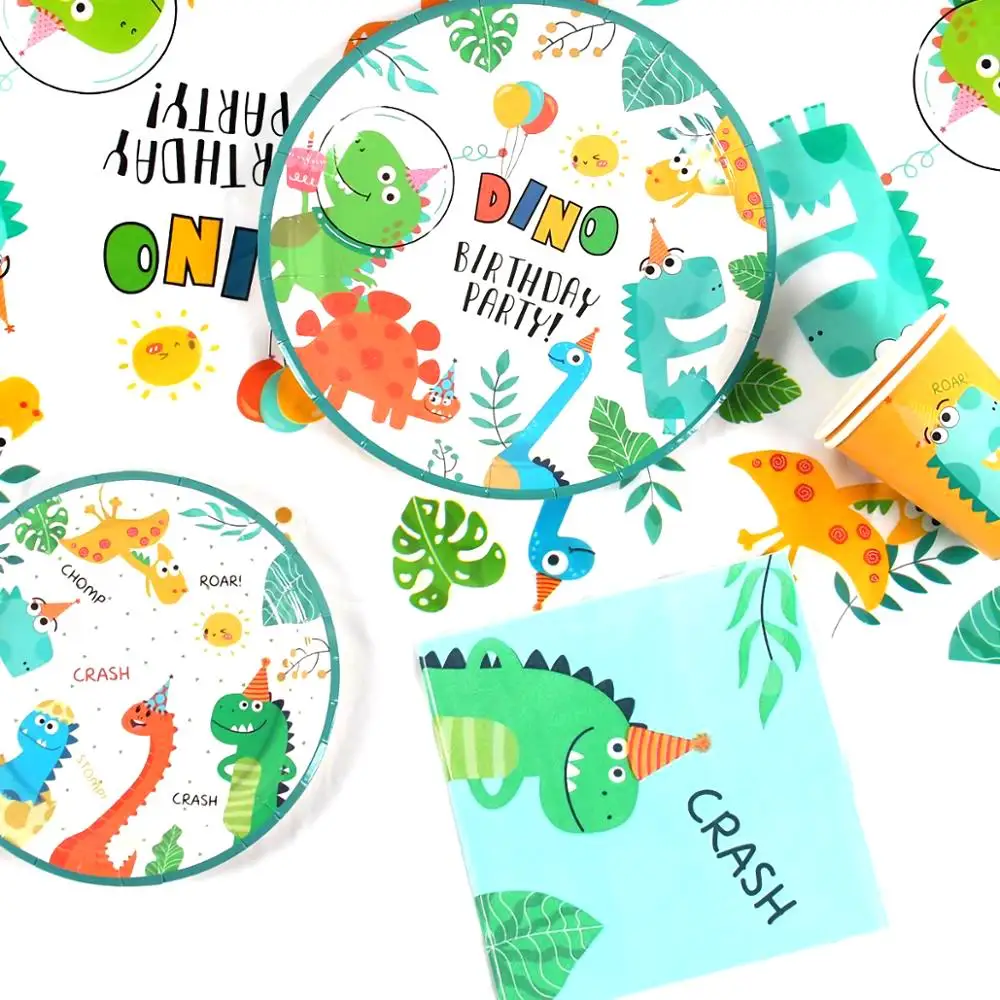 Одноразовая тарелка в виде динозавра, динозавра из джунглей, тематическая вечеринка на день рождения, украшение для детского праздника, товары для первого дня рождения