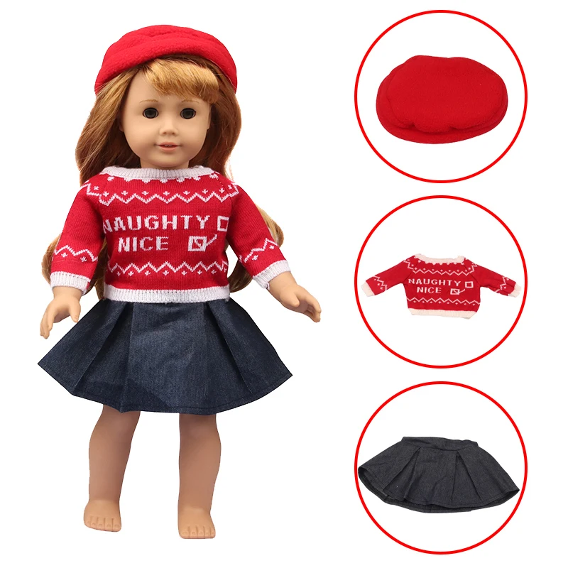 Новинка 2020, юбка красного цвета, костюм из трех предметов для американской куклы 17 дюймов, зимнее элегантное платье, одежда подходит для нашего поколения и куклы