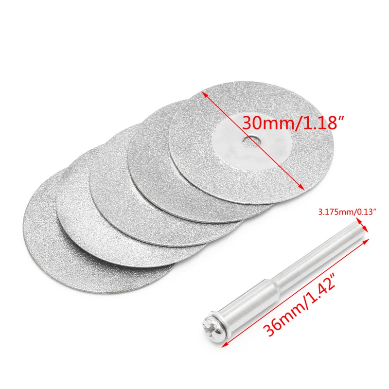 Совершенно новые и высококачественные никелевые скрепленные алмазные эти высокоскоростные отрезные диски с алмазным покрытием могут использоваться с вашим вращающимся инструментом для резки широкого спектра материалов. Резка дерева, стекла, пластика, металла, мрамора, каменной кладки, камня, бетона и стекловолокна. Для использования в плотных местах и для промывки размер хвостовика Диаметр: 3,175 мм (1/8 ") Длина отверстия хвостовика: 36 мм/1,42" Диаметр диска: 16 мм/0,63 "18 мм/0,71" 20 мм/0,79 "25 мм/0,98" 30 мм/1,18 "35 мм/1,38" 40 мм/1,57 "50 мм/1,97" материал: никель из оцинкованной стали Макс Скорость: 20000 об/мин, обратите внимание: 1. Добавьте немного воды для охлаждающей жидкости при использовании. Добавьте немного воды для охлаждающей жидкости при использовании. Посылка включает в себя: алмазные режущие диски 5x16 мм 1 сверло