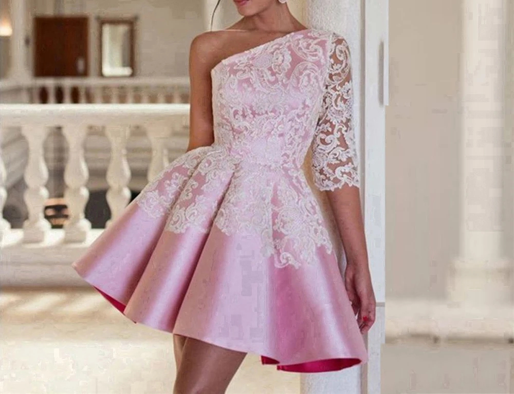 Атласное Бальное Платье До Колена, розовое, с аппликацией