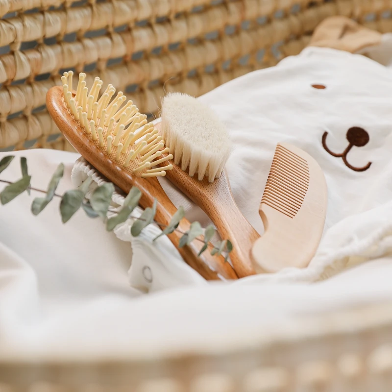 Детская щетка для волос Let's Make Baby Care, из натуральной шерсти, деревянная расческа, массажер для новорожденных