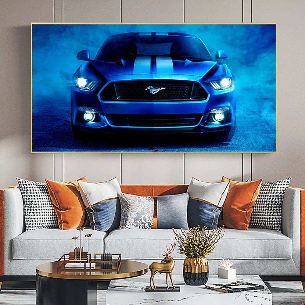 Классический автомобиль Ford Mustang, ретро, Настенный декор, картина на плакаты и принты, винтажная Роскошная Картина на холсте автомобиля для гостиной