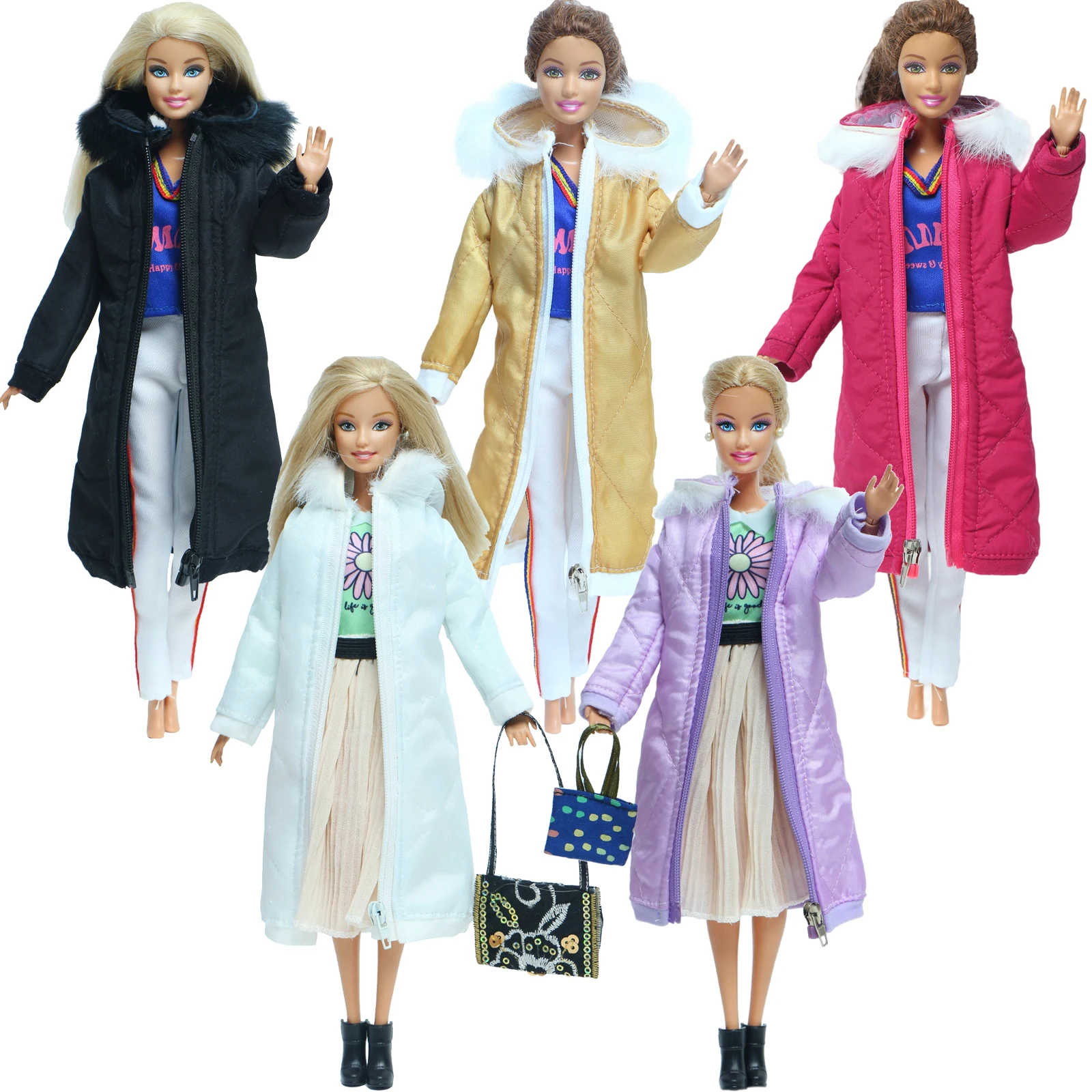 Красивое длинное пальто ручной работы, хлопковое платье, меховой зимний наряд, теплая Повседневная одежда, аксессуары, Одежда для куклы Барби, детская игрушка 12 дюймов