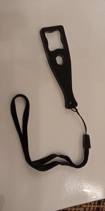 Крепится на веревке, удобнее носить с собой гаечный ключ.