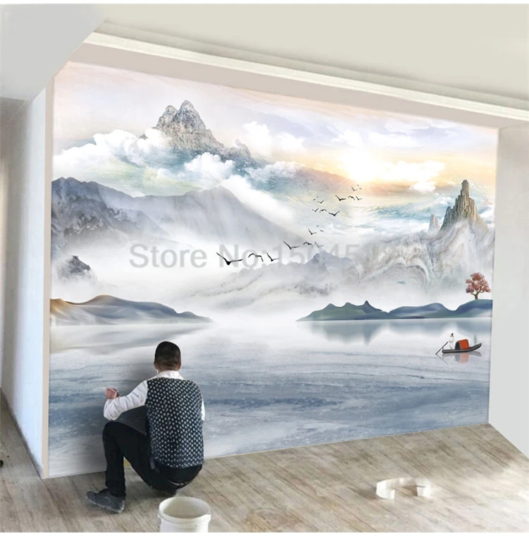 Фотообои на заказ любого размера, обои художественные, с чернильным пейзажем, мраморные, для гостиной, для дивана, спальни, для домашнего декора