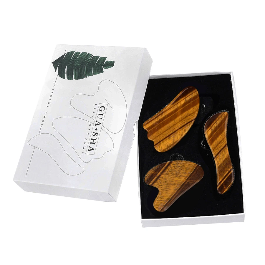 Натуральный камень тигровый глаз нефритовый роликовый лицевой массажер Guasha Board Set Настоящий камень массажер для лица гуашь скребок гуаша скребок