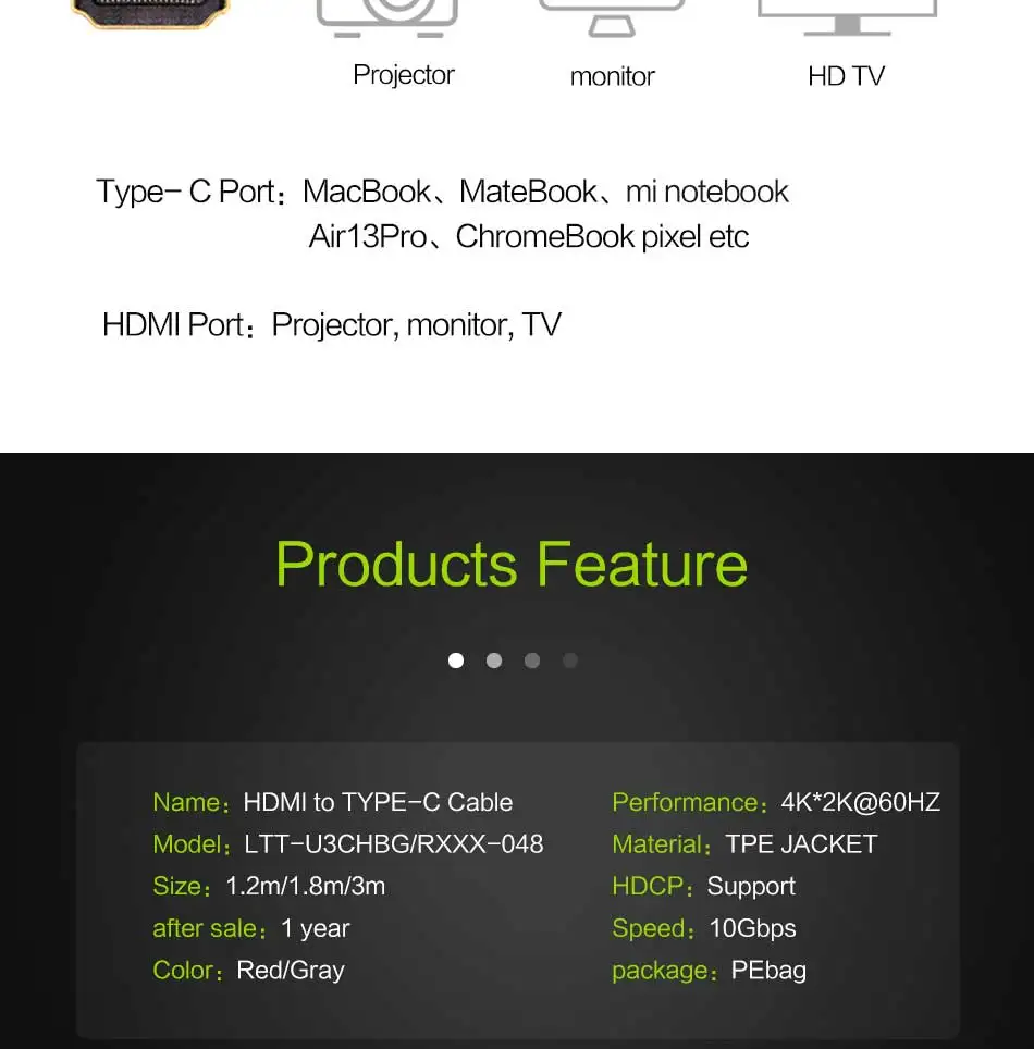 Доступны 2 модели, пожалуйста, выберите подходящую модель в соответствии с вашими потребностями:1. Модель с алюминиевой оплеткой: Поддержка Макс. 4K @ 60 Гц (серый, красный цвет), 1,2 м // 1,8 м/3 м длина кабеля опционально.2. Модель типа Modeing: Поддержка макс. 4K @ 30 Гц (черный цвет),1 .. 2 м/1,8 м/3 м длина кабеля.