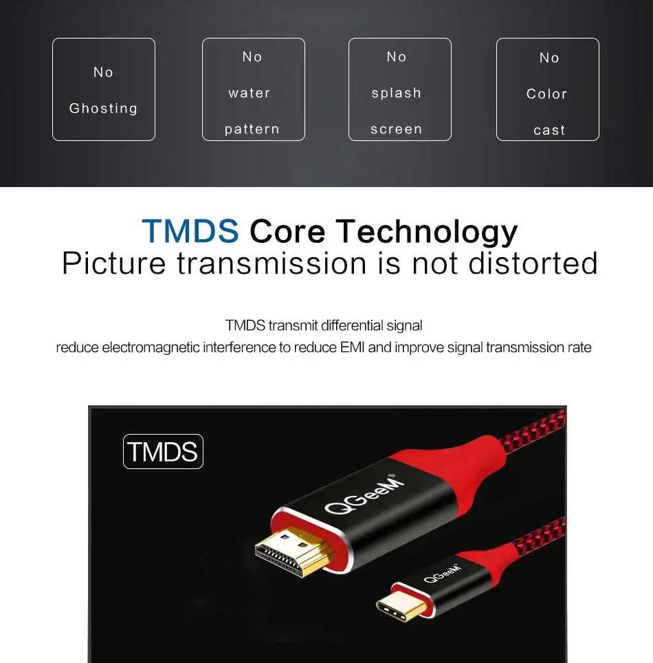 Кабель-переходник QGeeM USB C на HDMI 4K 60 Гц, USB Type-C на HDMI USB-C, конвертер Thunderbolt 3 для MacBook, Huawei, Samsung S10