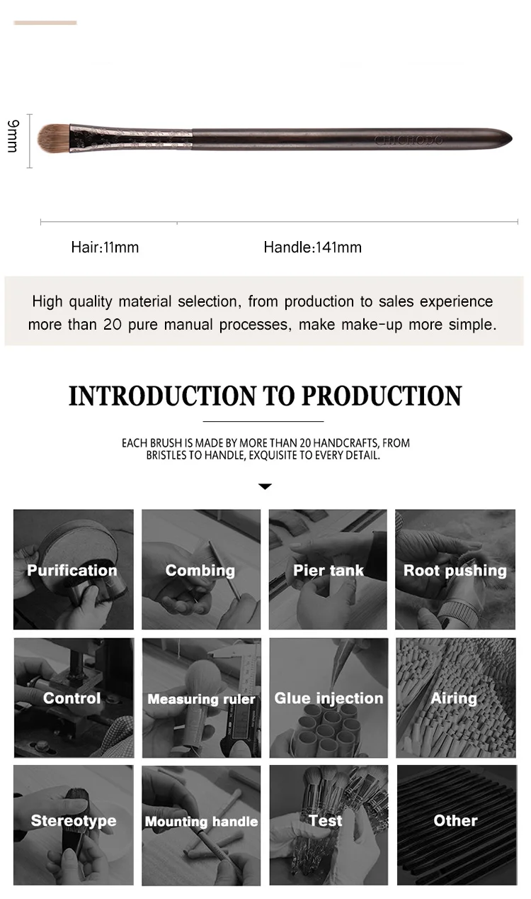 Ручка: Эбеновое деревоВолосы: СинтетическиеТрубка: лазерный резной алюминиевый кубДлина волос: 11 ммШирина волос: 9 ммОбщая длина: 152 ммВес: 6,8 г