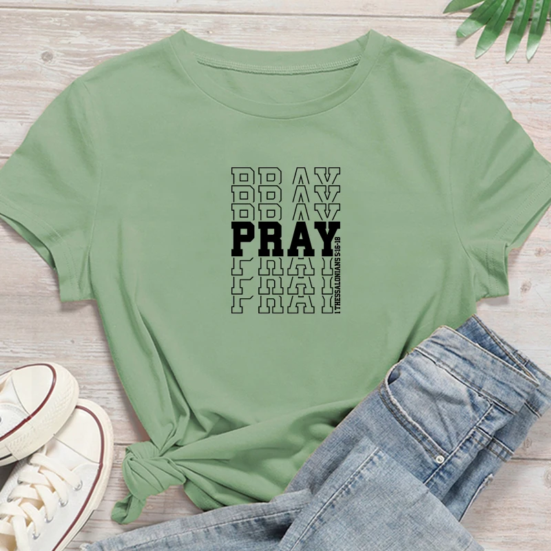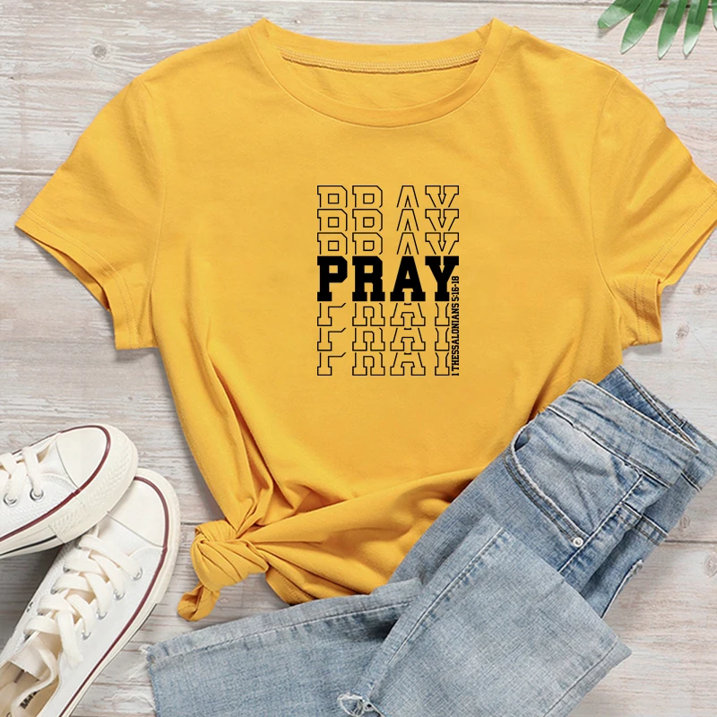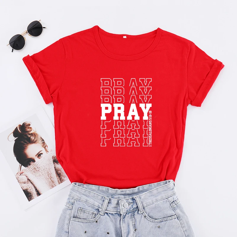 Женские футболки с надписью «Pray», хлопковые футболки размера плюс с рисунком, красные топы, христианская религиозная одежда, Прямая поставка