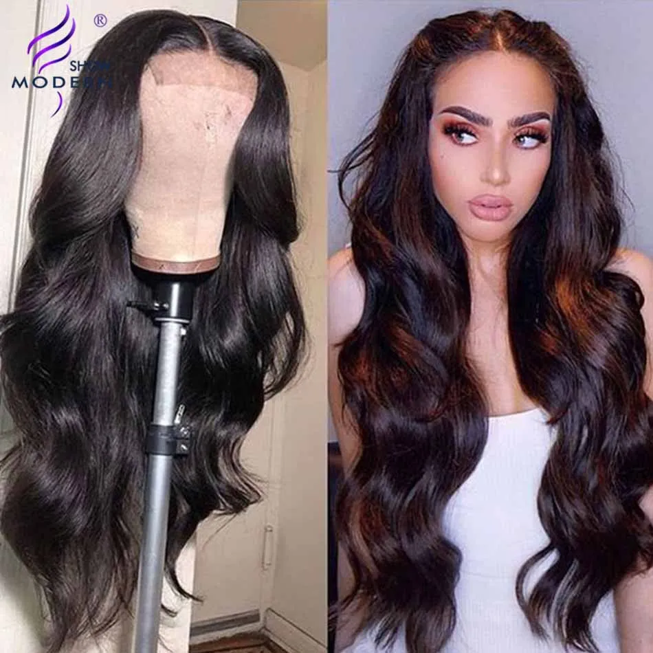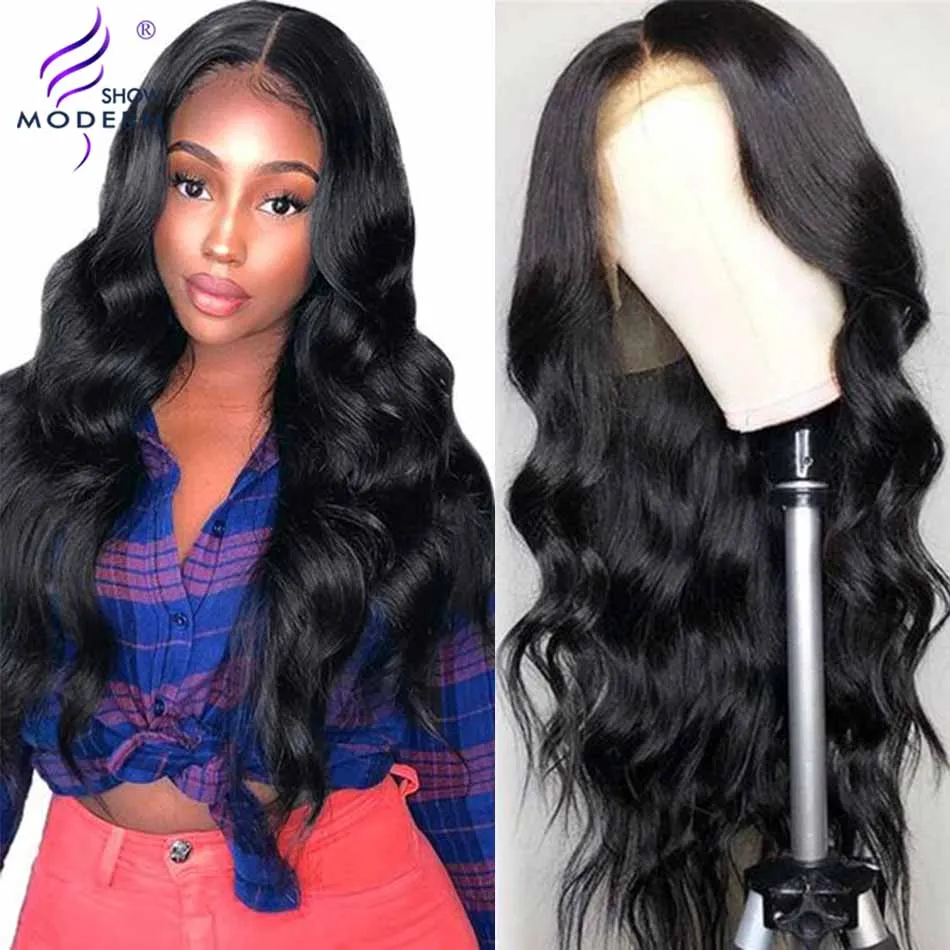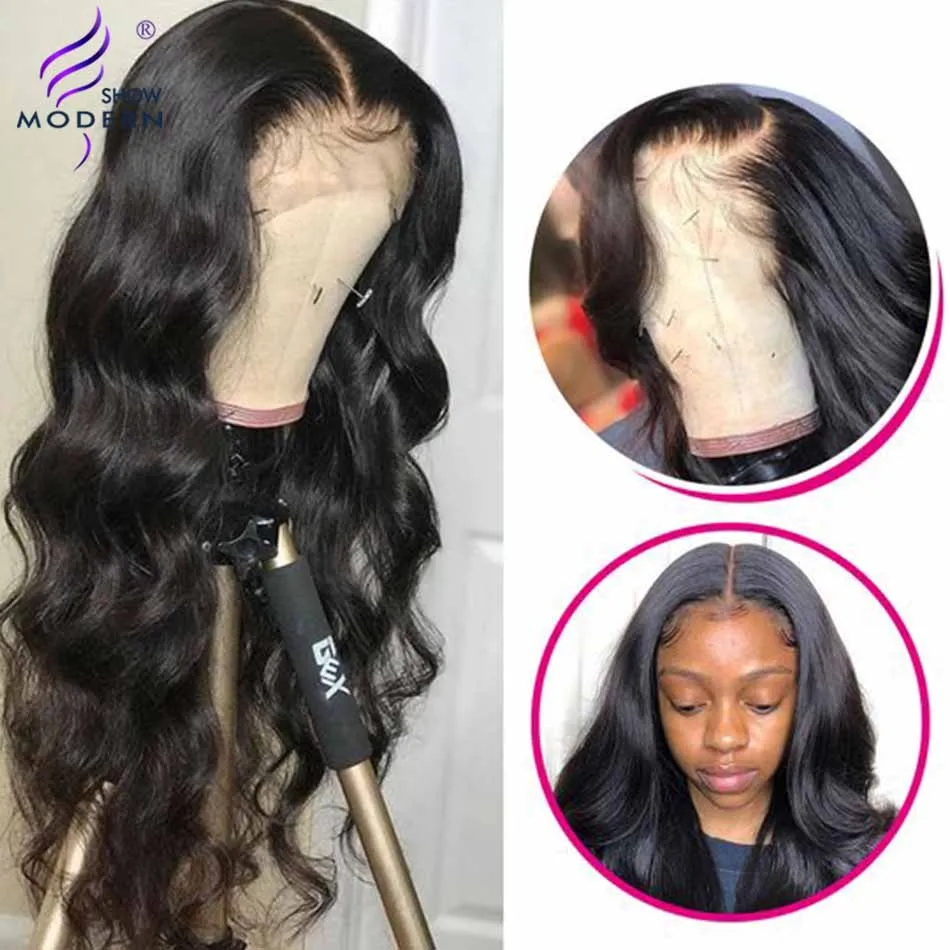 Современный показ бразильский 13 6 кружевной передний парик из человеческих волос, объемный волнистый парик для черных женщин, предварительно выщипанный Прозрачный HD кружевной парик Remy