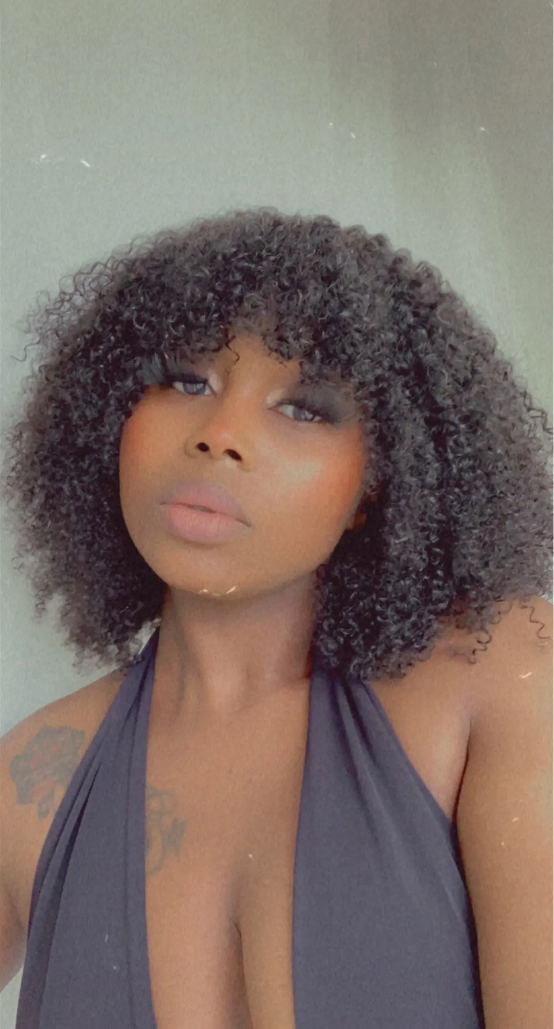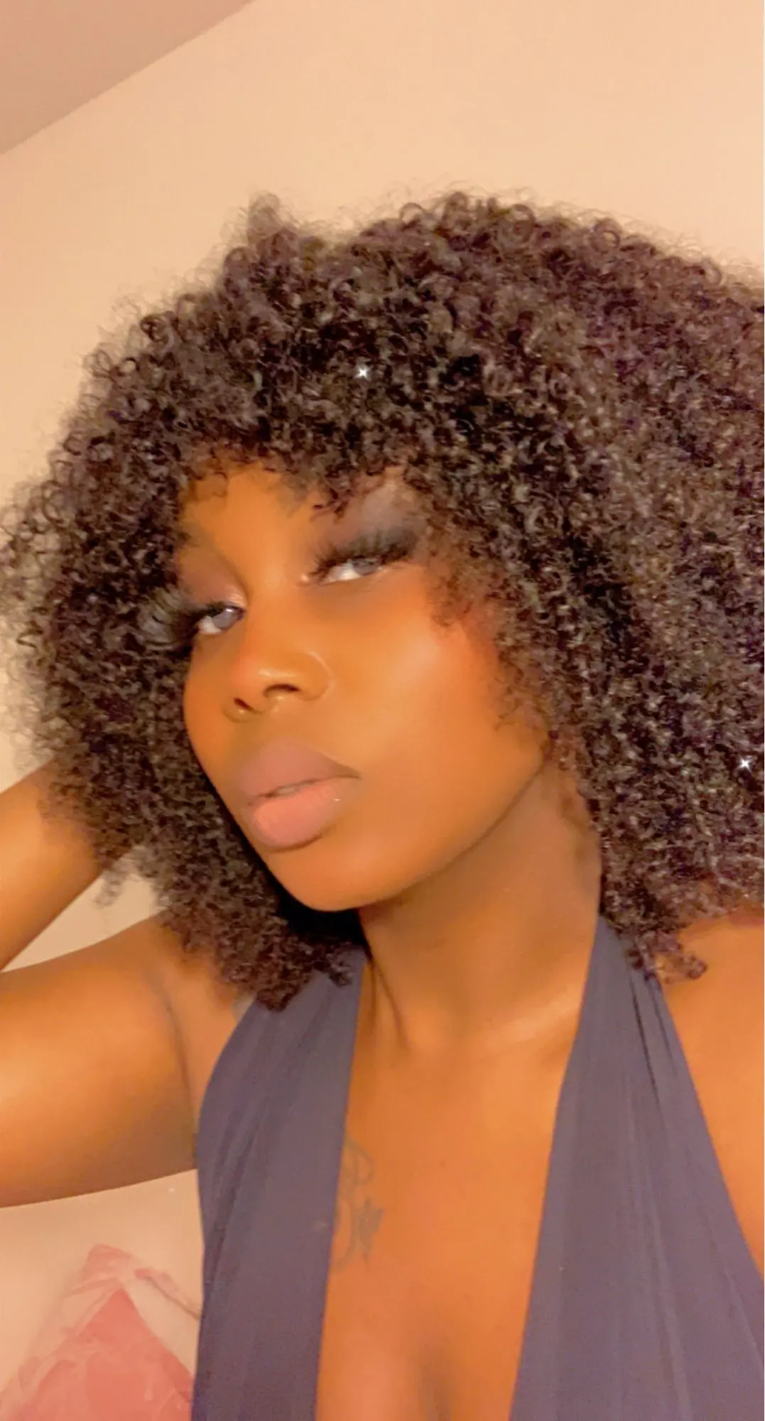Афро кудрявые человеческие волосы парики с челкой полностью машинная работа парик для женщин бразильские неповрежденные волосы парик с бахромой натуральный черный цвет