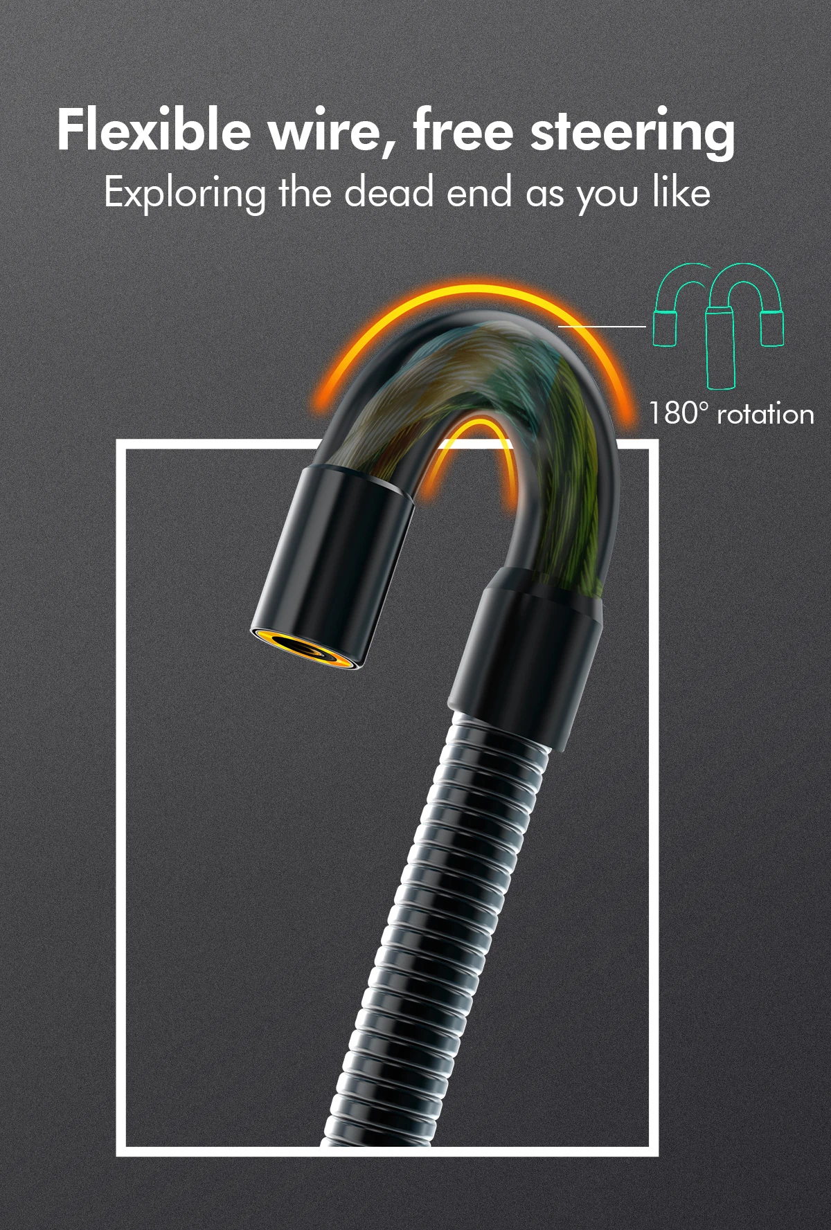 Эндоскопическая камера с интерфейсом передачи данных 1,3 в 1 (Type-C/USB/MICRO) 2. Просмотр видео в реальном времени. Запись видео и захват изображения 3. Светодиодная лампа высокой яркости, пять регулируемых кнопок портативной камеры для быстрой фотосъемки во время простого использования Эндоскоп с регулируемым углом наклона 4,180 градусов, можно запирать одной рукой, быстро и удобно