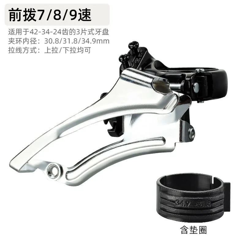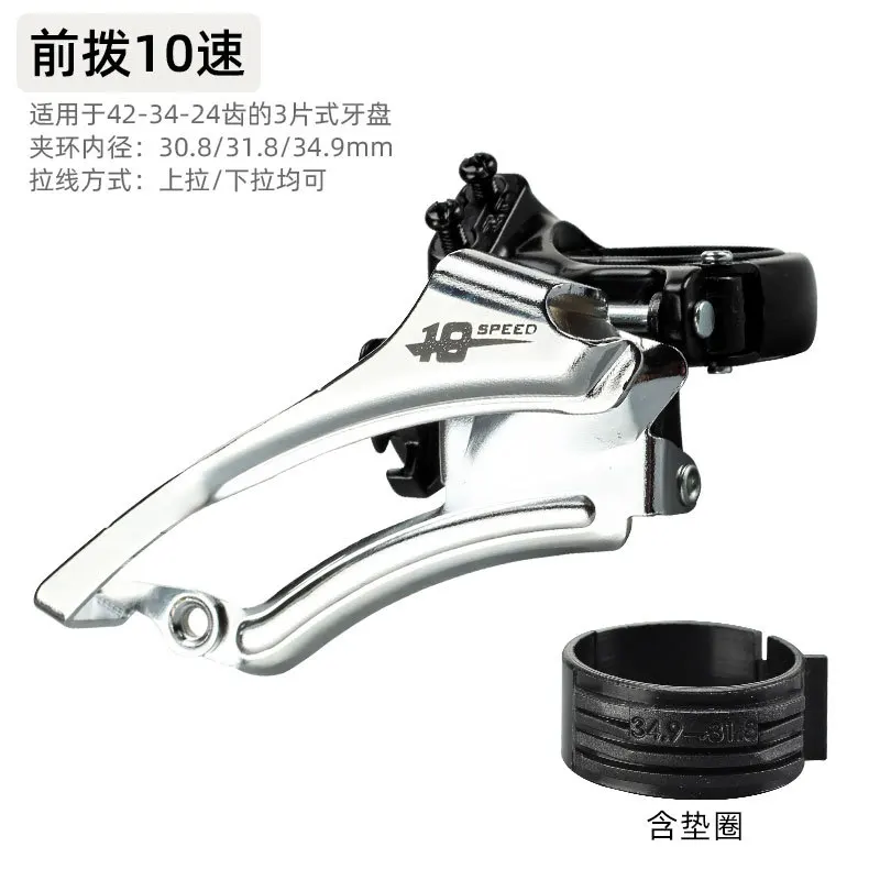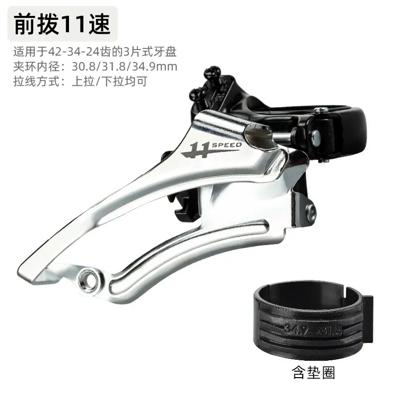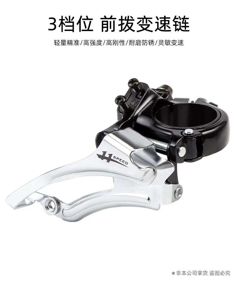 MicroNew 3 скоростной передний переключательМодель: 7 8 9 10 11 скоростейВес около 147 гПередняя Звездочка 42/34/24T (поддержка тяги вверх-вниз)Монтажный диаметр 30,8 мм/31,8 мм/34,9 ммМесто происхождения Тайвань CN