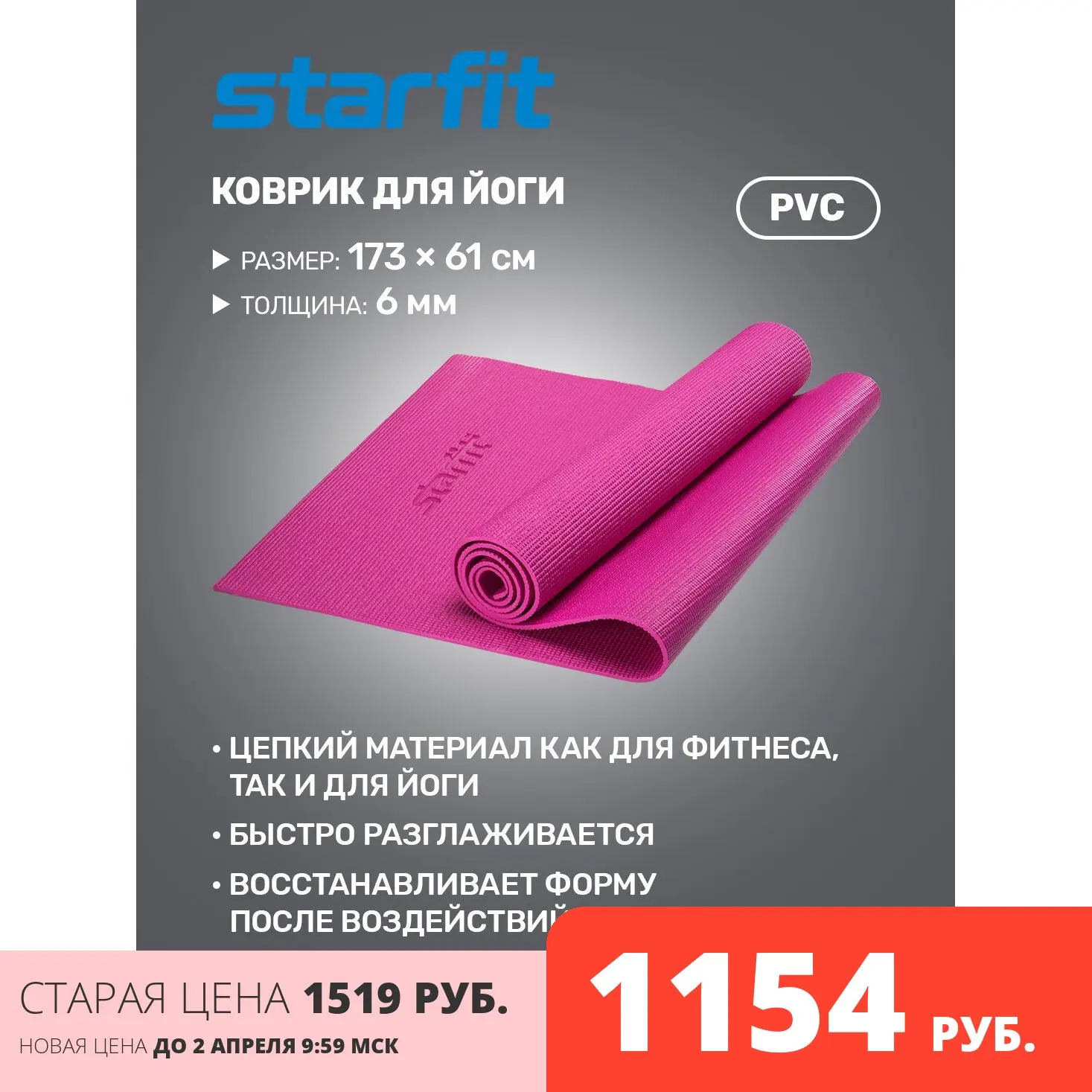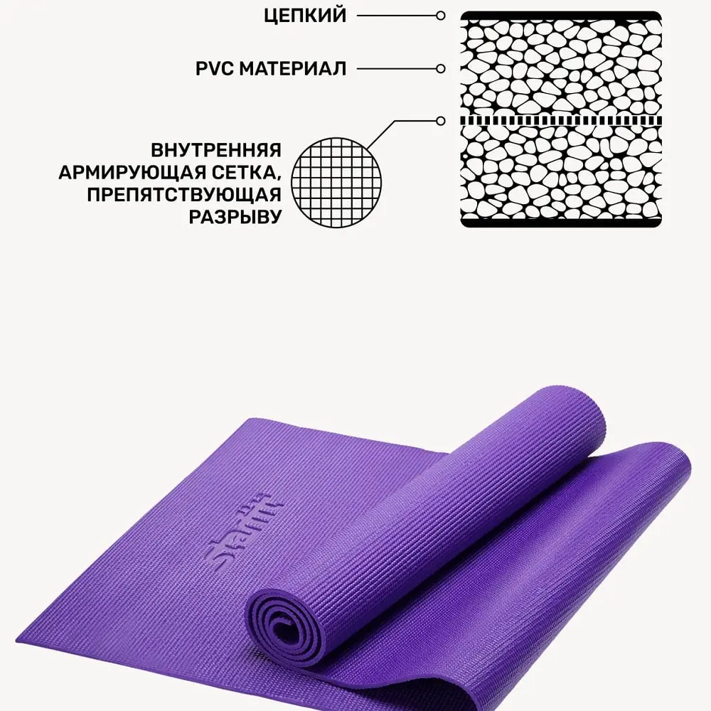 Коврик для йоги STARFIT FM-101 PVC 173x61x0,6 см, фиолетовый 116