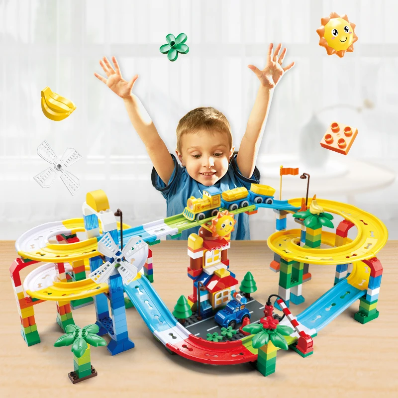 Большие частицы Roller Coaster строительные блоки мрамор бег Кирпичи DIY строительные игрушки для Детский подарок