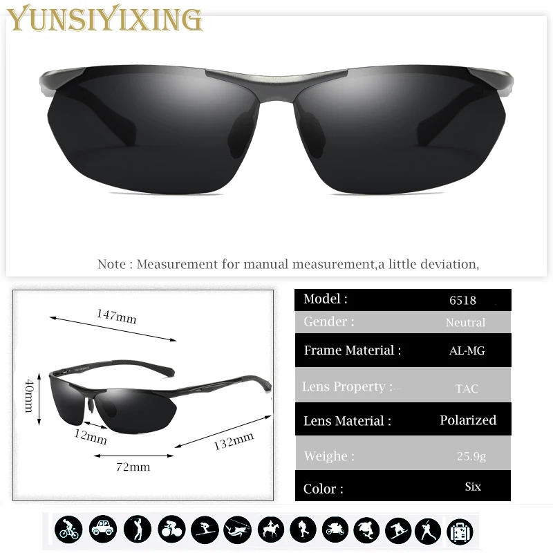 Поляризованные солнцезащитные очки YUNSIYIXING мужские спортивные солнцезащитные очки из алюминиево-магниевого сплава для вождения рыбалки винтажные очки 6518 солнцезащитные очки