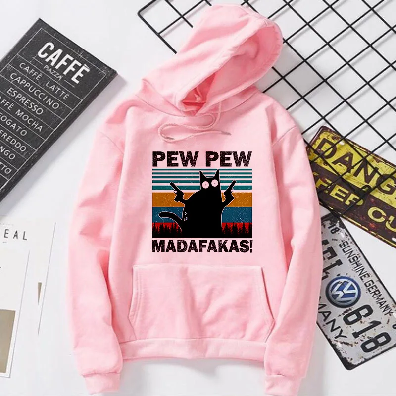 Толстовка женская с капюшоном Pew Madafakas, с забавным принтом уби...