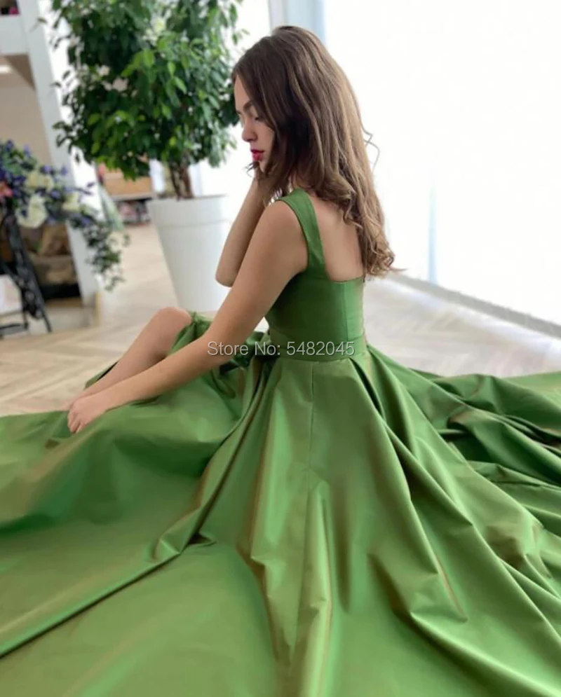 Лори зеленый Выпускные платья Милая со шлицей и поясом с бантом тафта арабский стиль вечернее платье Vestido De Festa Длинные знаменитости вечерние платье для Выпускной