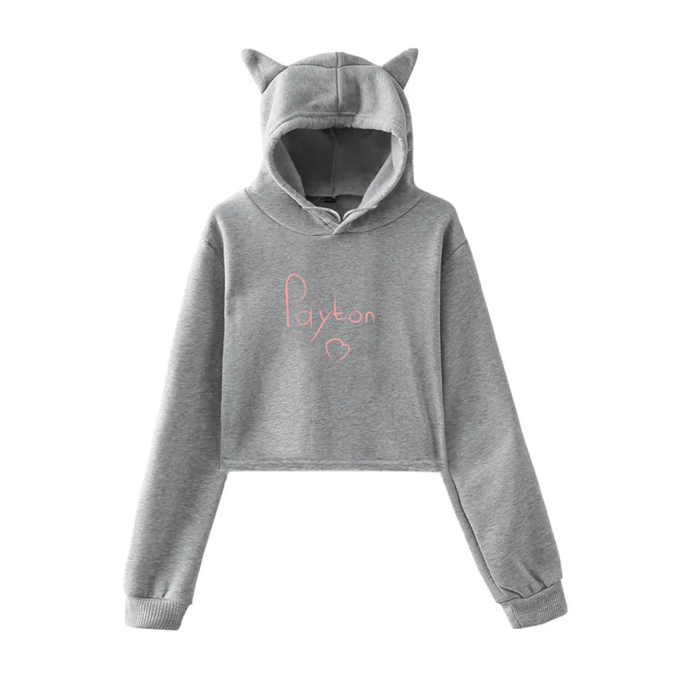 Укороченные толстовки с кошачьими ушками, женские свитшоты в стиле ...