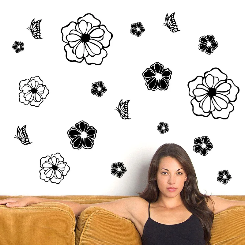 Высокое качество стены Стикеры для Гостиная Спальня в качестве фона для дивана и съемный цветок стикер на стену с бабочками Стикеры для домашнего декора