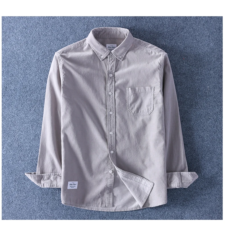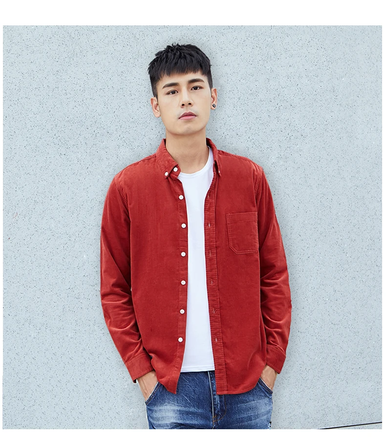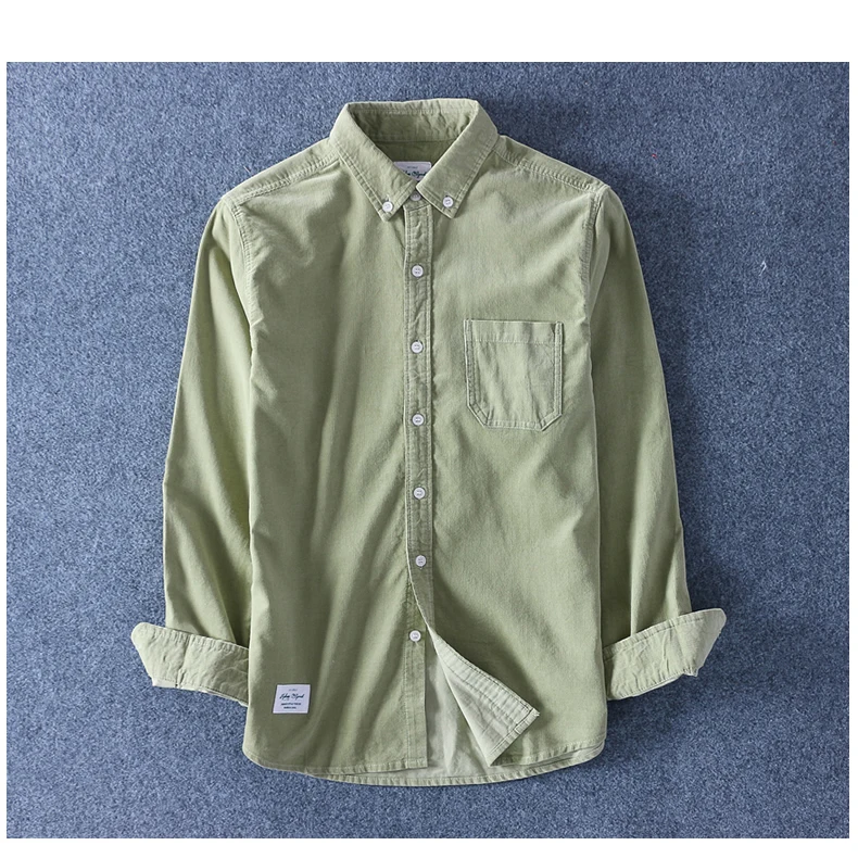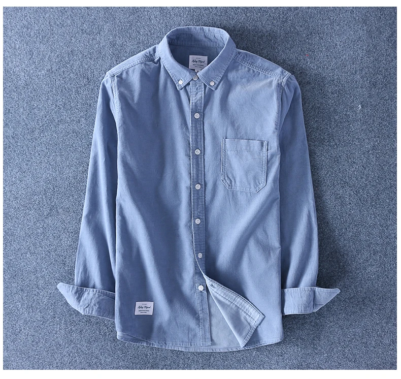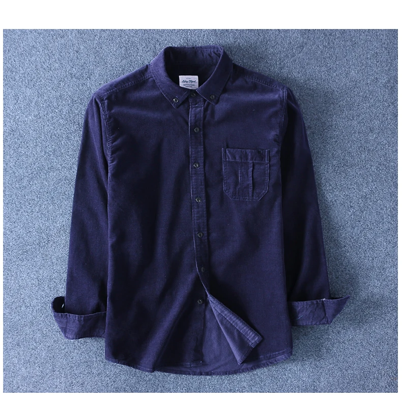Мужская Вельветовая рубашка с длинными рукавами, Повседневная рубашка из 100% хлопка с воротником на пуговицах и нагрудным карманом