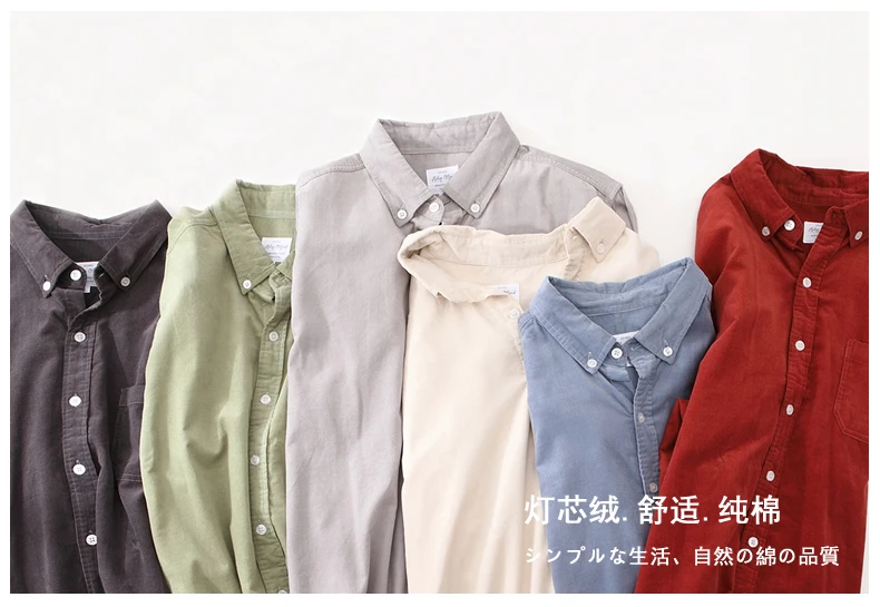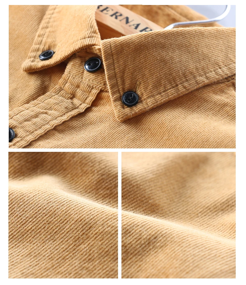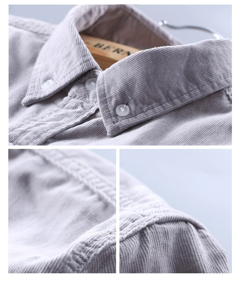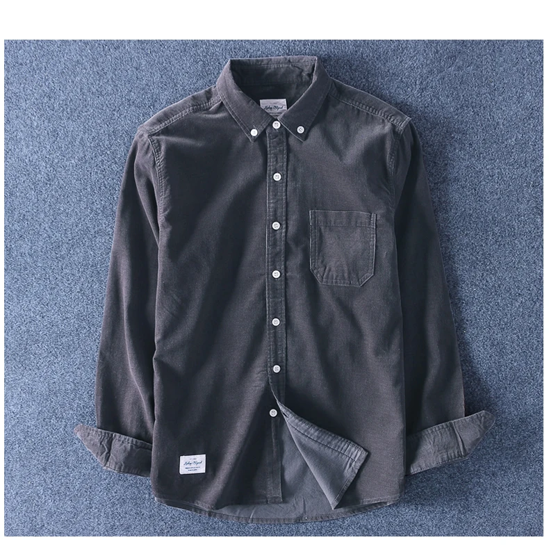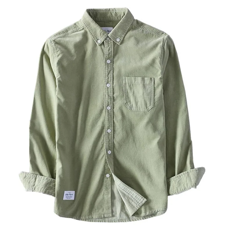 Мужская Вельветовая рубашка с длинными рукавами, Повседневная рубашка из 100% хлопка с воротником на пуговицах и нагрудным карманом
