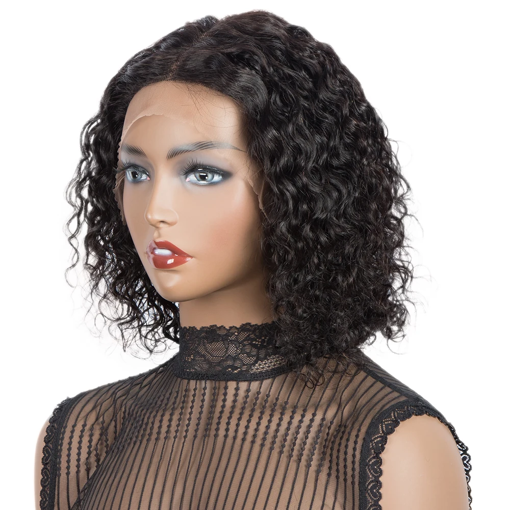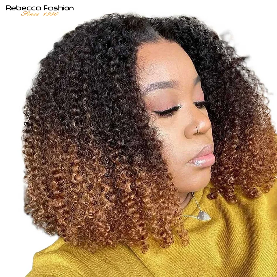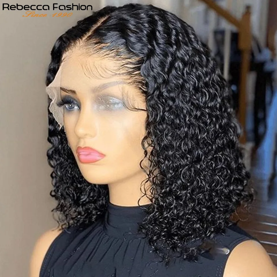 Короткие вьющиеся волосы Ребекка, Боб, парики из человеческих волос на сетке спереди, Детские волосы, парик с глубокой волной, женский парик, человеческие волосы