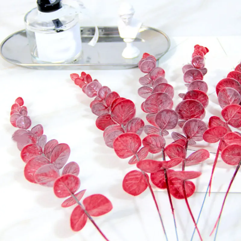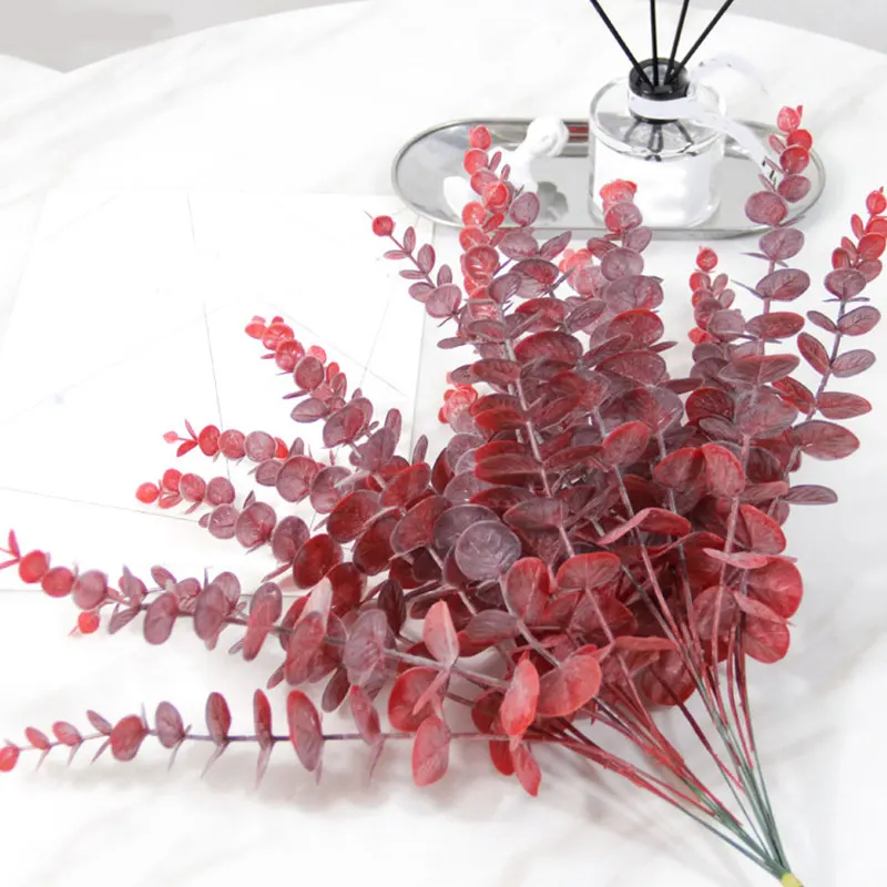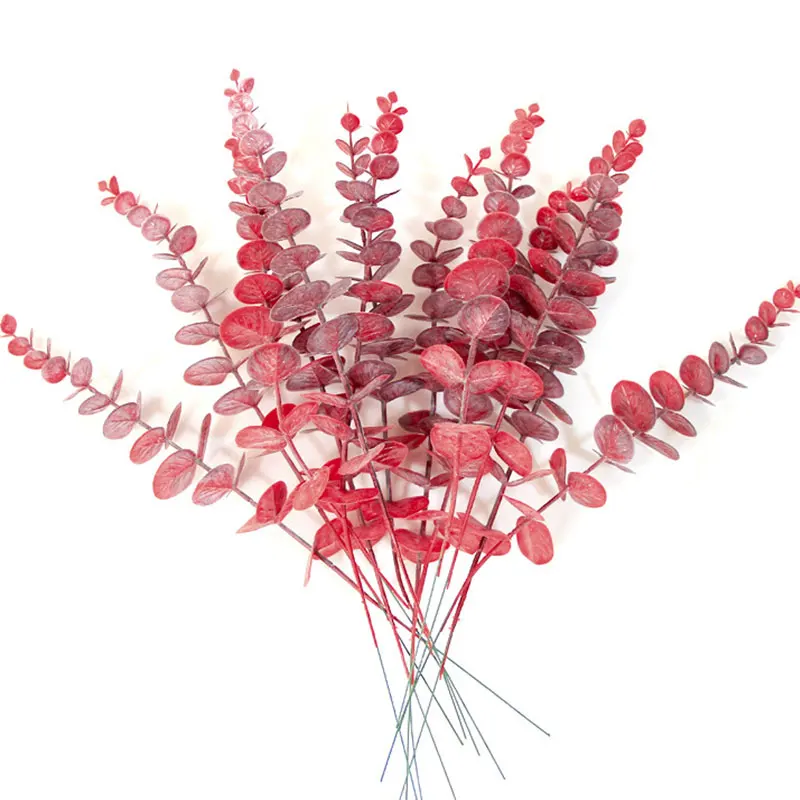 Искусственные эвкалиптовые листья, ветки растений, пластиковые зеленые и красные листья, реквизит для свадебной съемки, домашний декор, 1 шт.