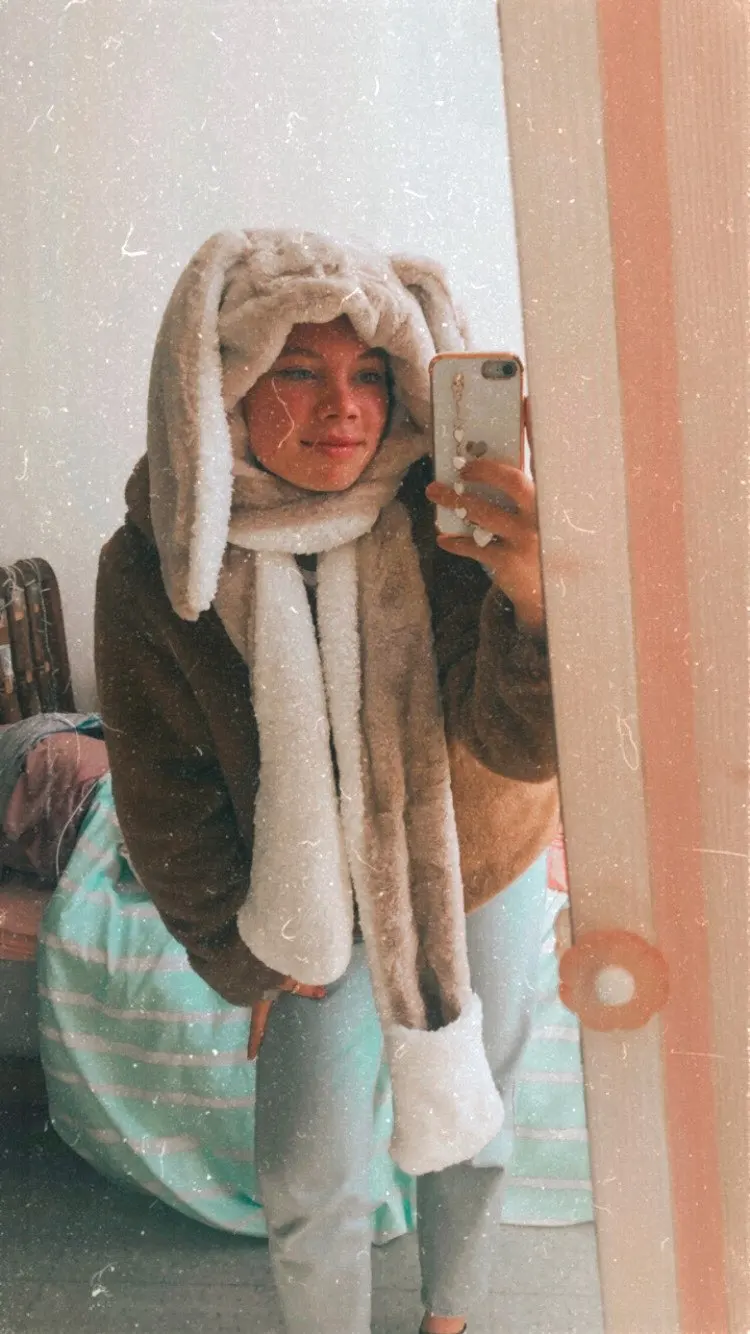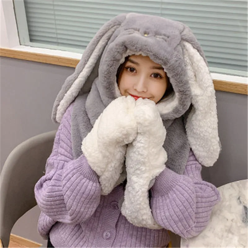 Шапка-шарф кролик, 3 в 1, с длинными ушками