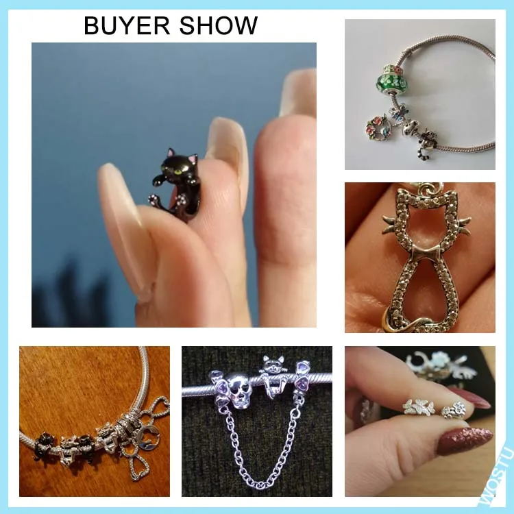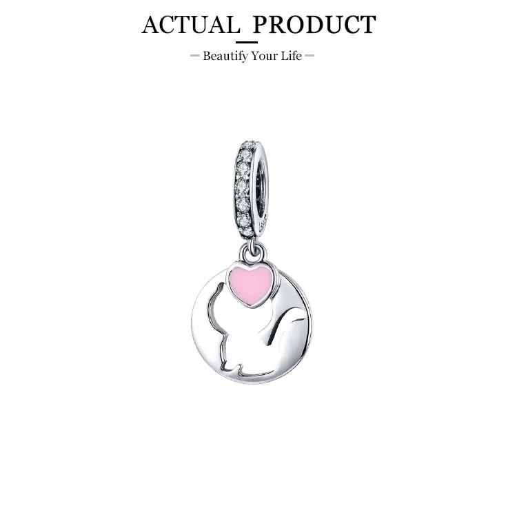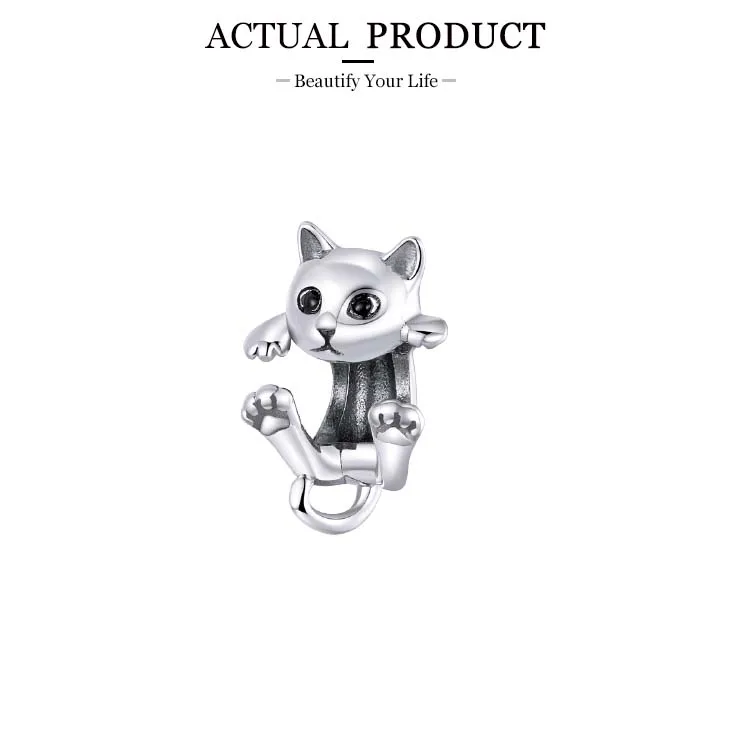 Подвеска для браслета WOSTU из серебра 925 пробы с изображением котенка бусина "Кошка", из серебра 925 пробы